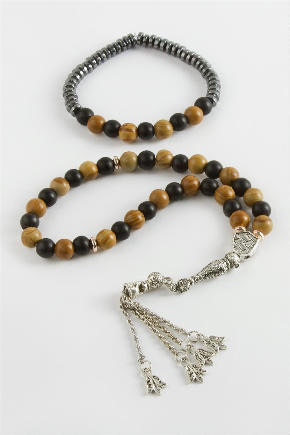 2li Jasper Doğal Taş Bileklik Tesbih Set-Kahverengi