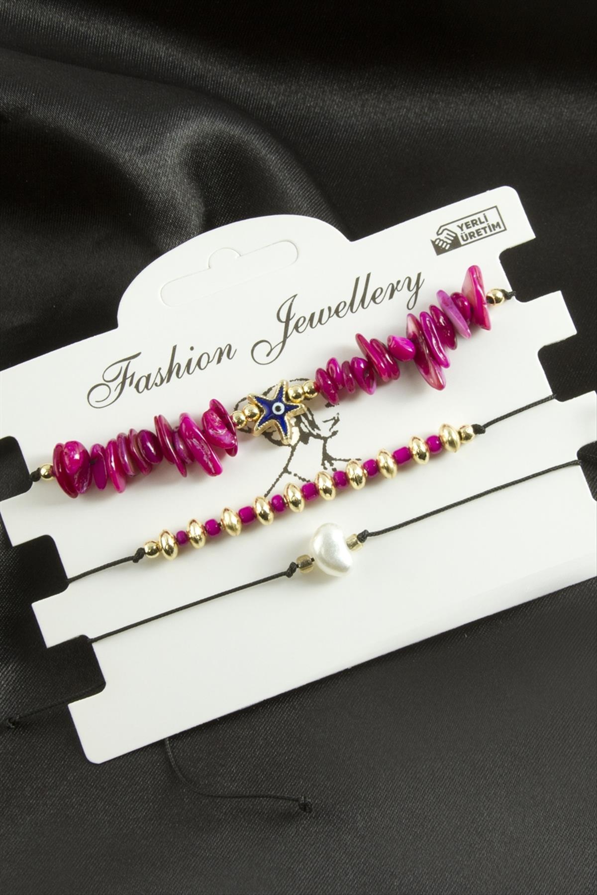 3 Adet Deniz Yıldız Mineli Kırık Doğaltaş Bileklik-Pembe