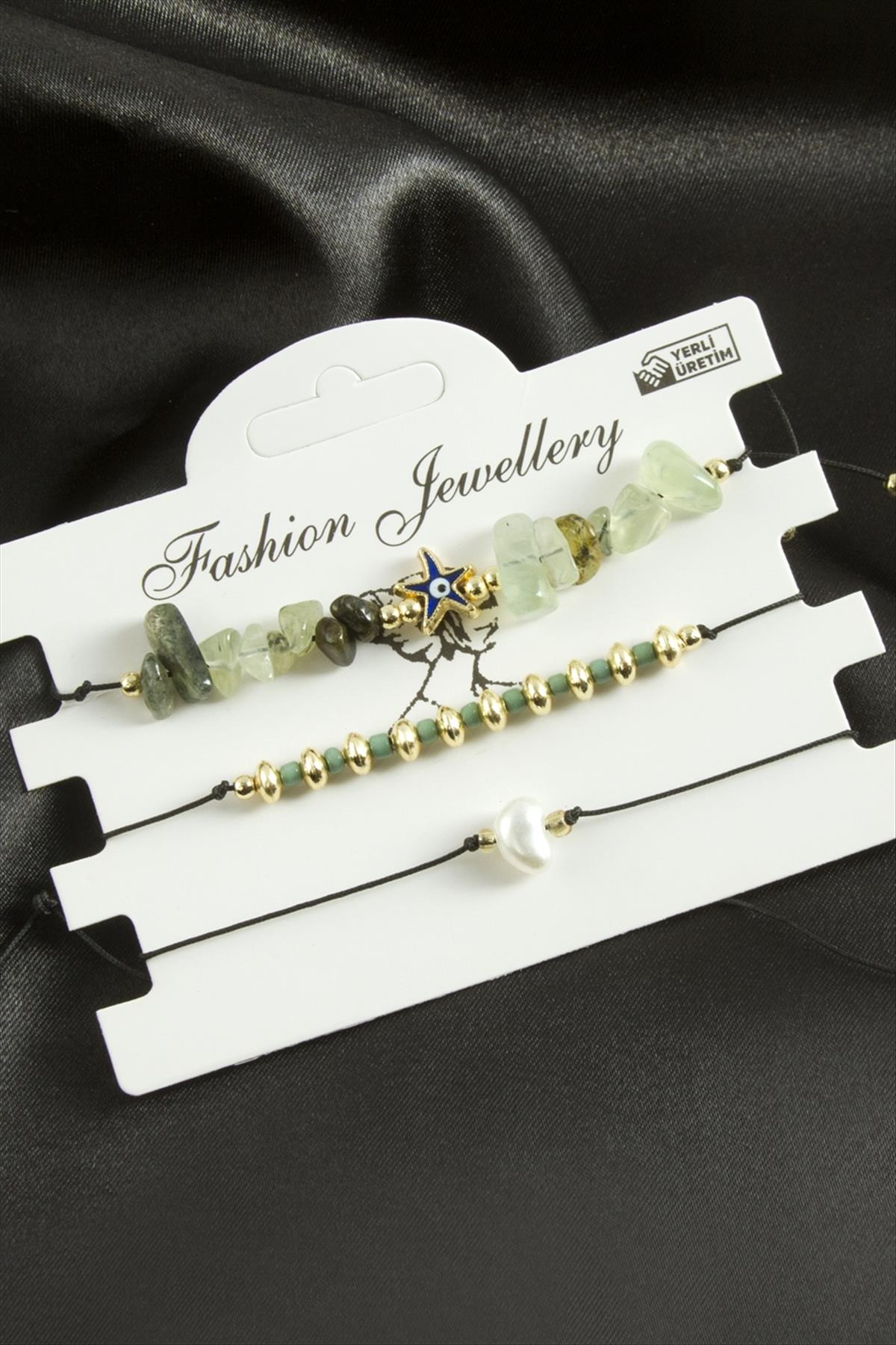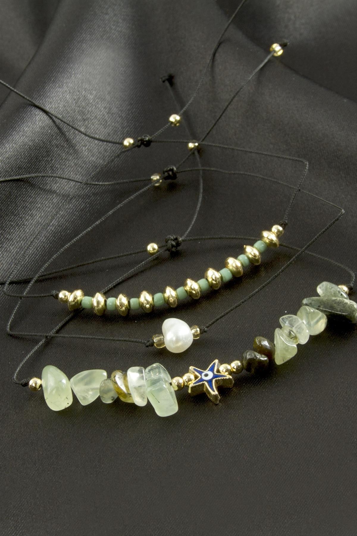 3 Adet Deniz Yıldız Mineli Kırık Doğaltaş Bileklik