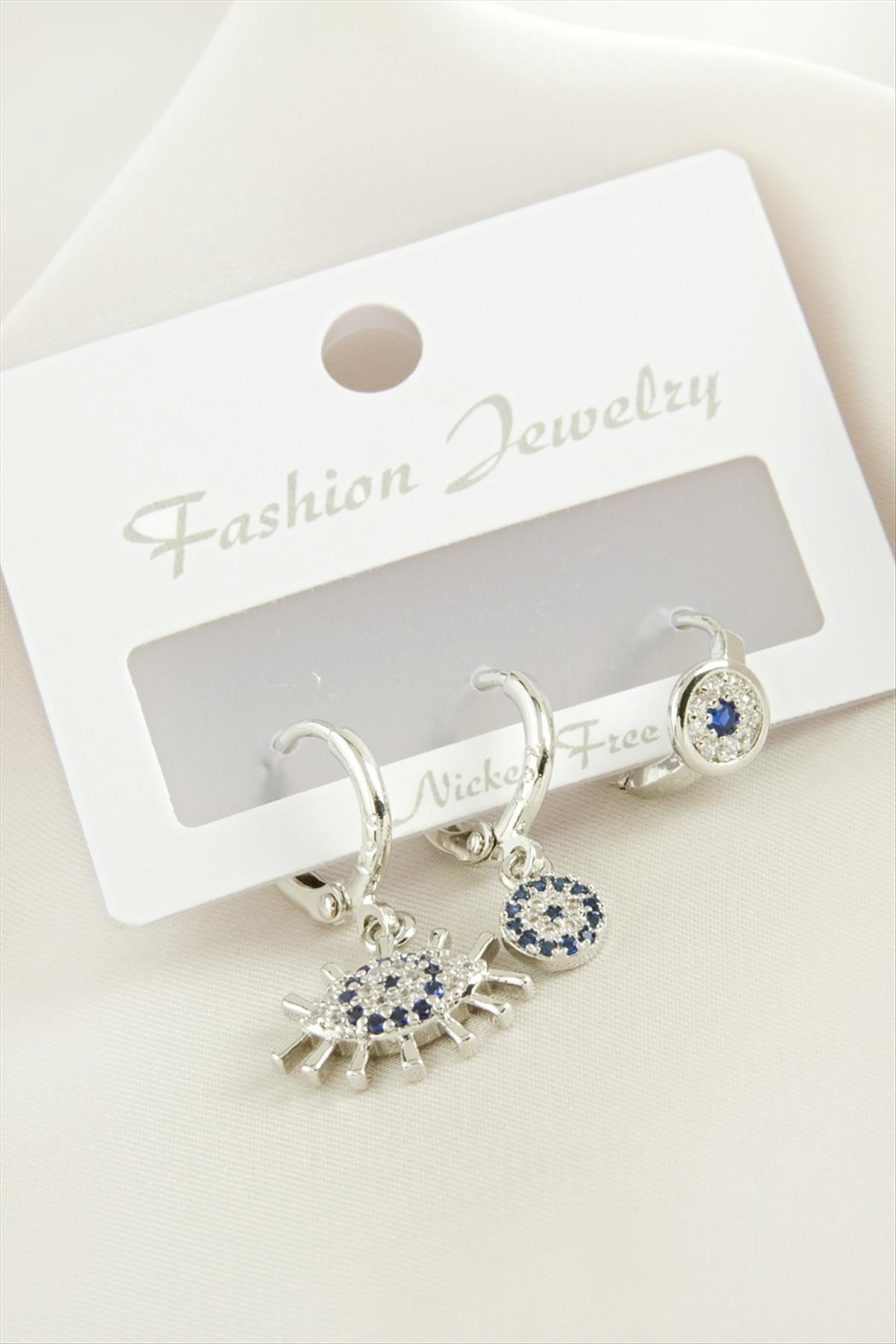 3 Adet Göz Nazar Zirkon Taşlı Küpe