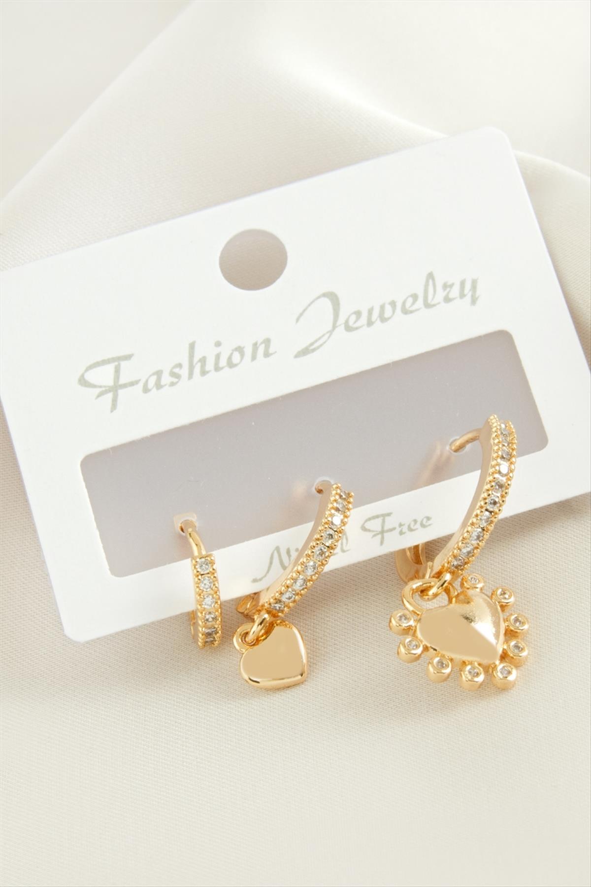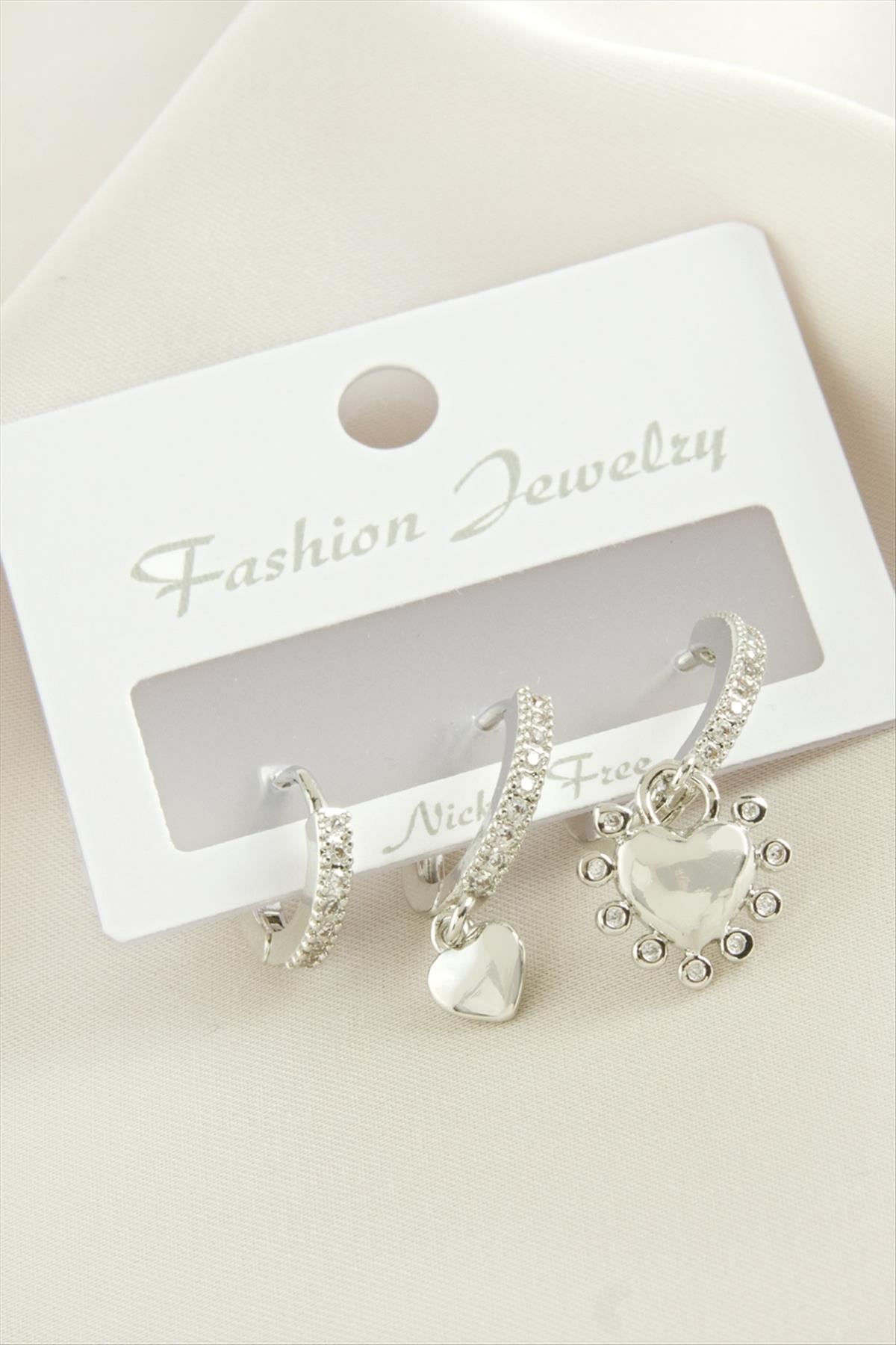 3 Adet Kalp Zirkon Taşlı Küpe-Gümüş Rengi
