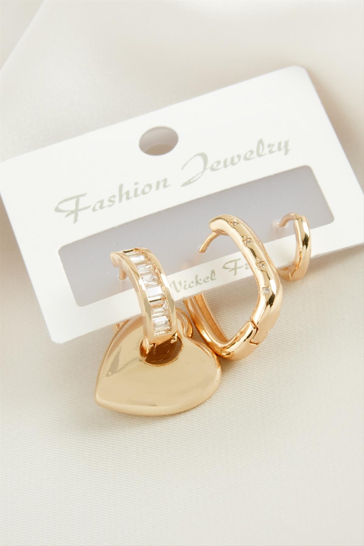 3 Adet Kalp Zirkon Taşlı Küpe-Sarı