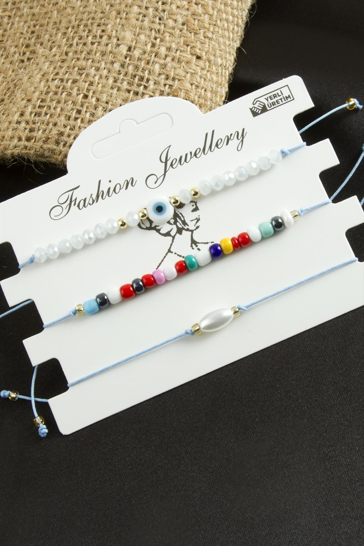 3 Adet Nazar Kristal Kum Boncuk Bileklik