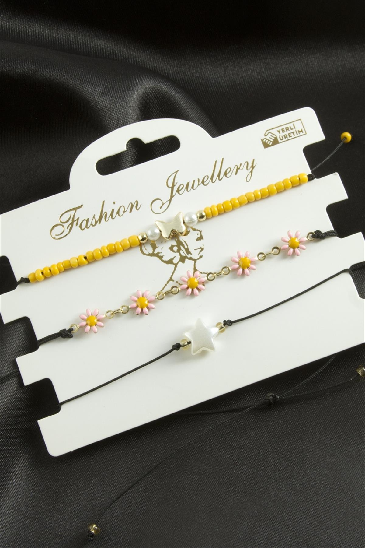 3 Adet Papatya Mineli Kum Boncuk Bileklik
