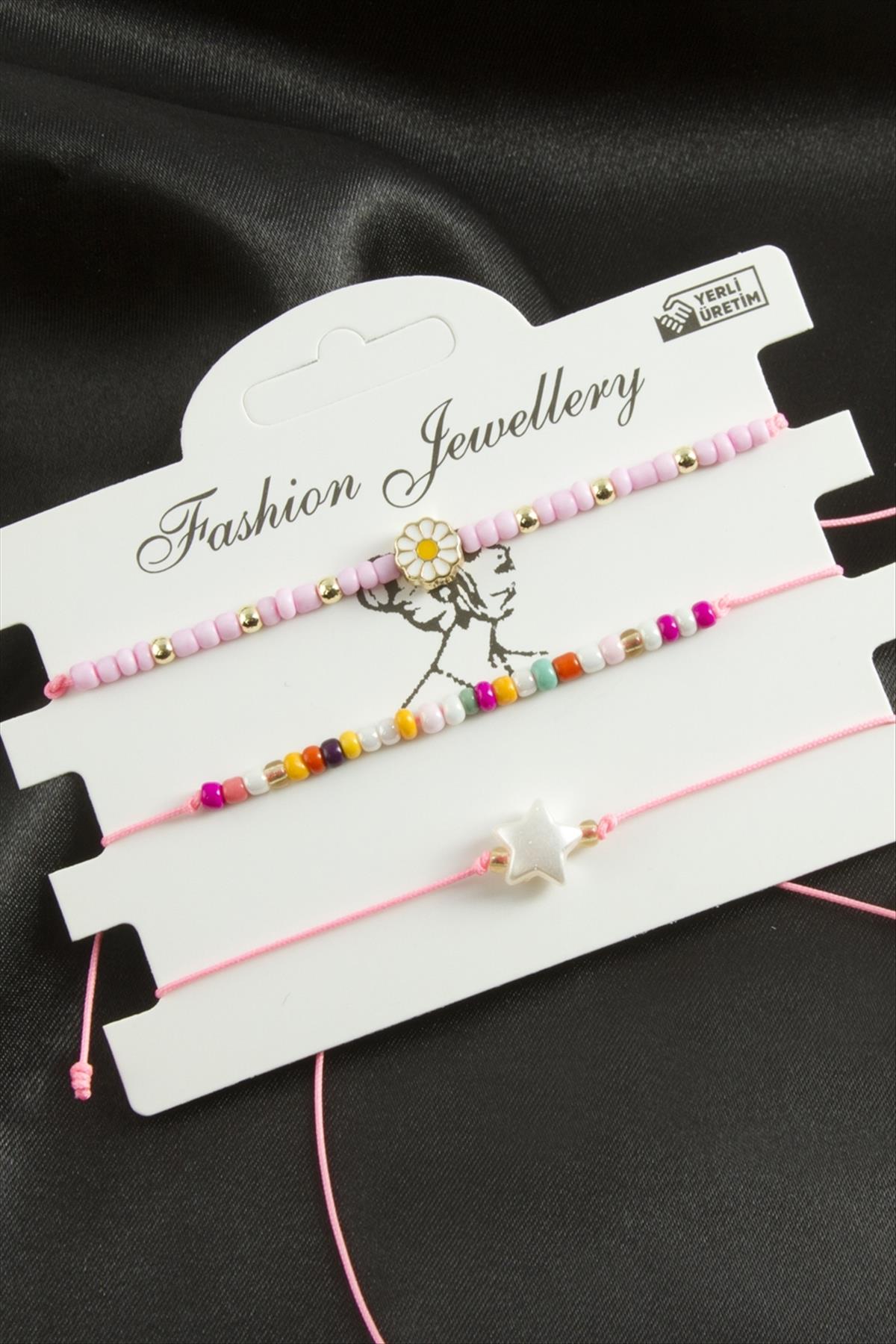 3 Adet Papatya Mineli Kum Boncuk Bileklik-Pembe