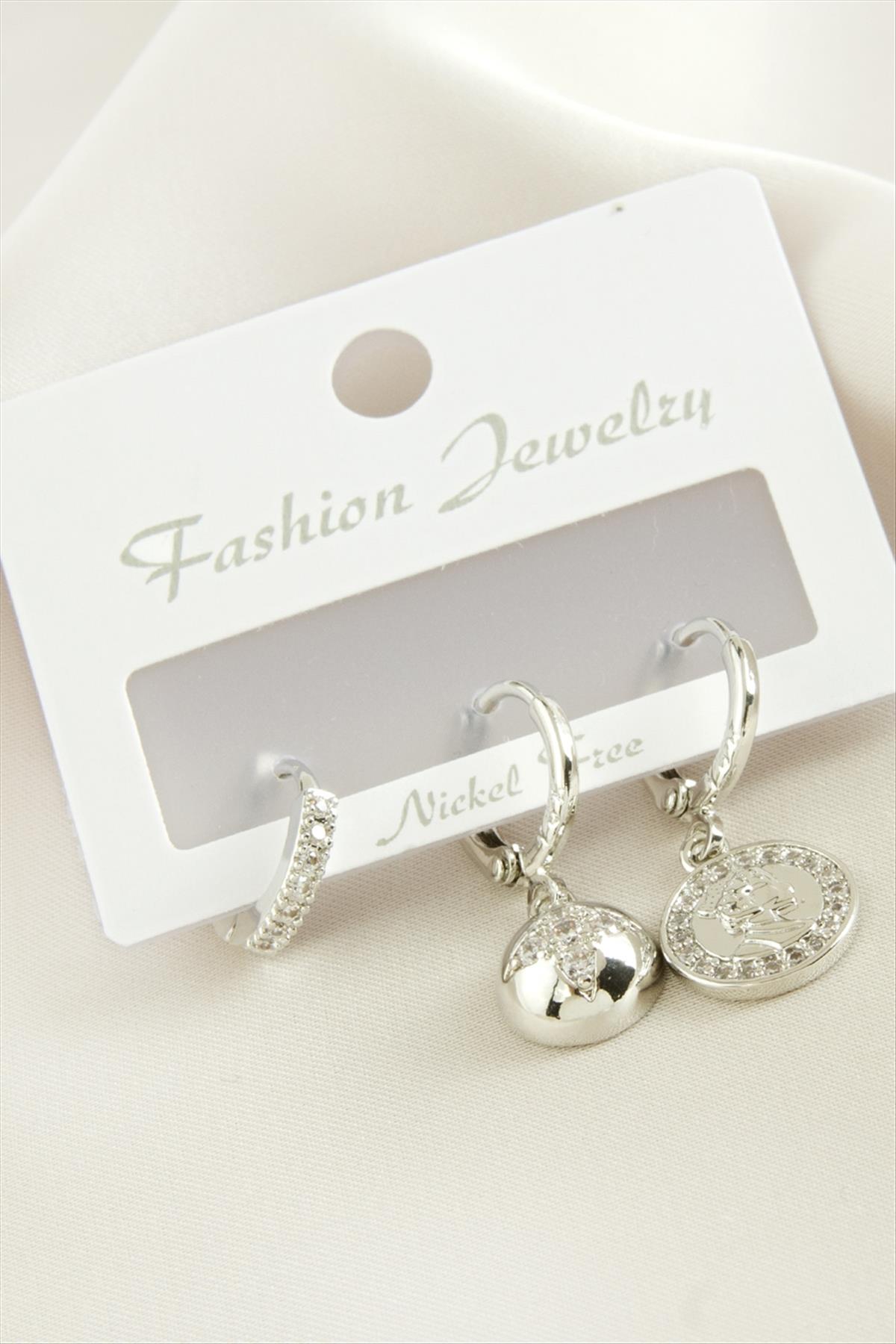 3 Adet Yıldız Zirkon Taşlı Küpe-Gümüş Rengi