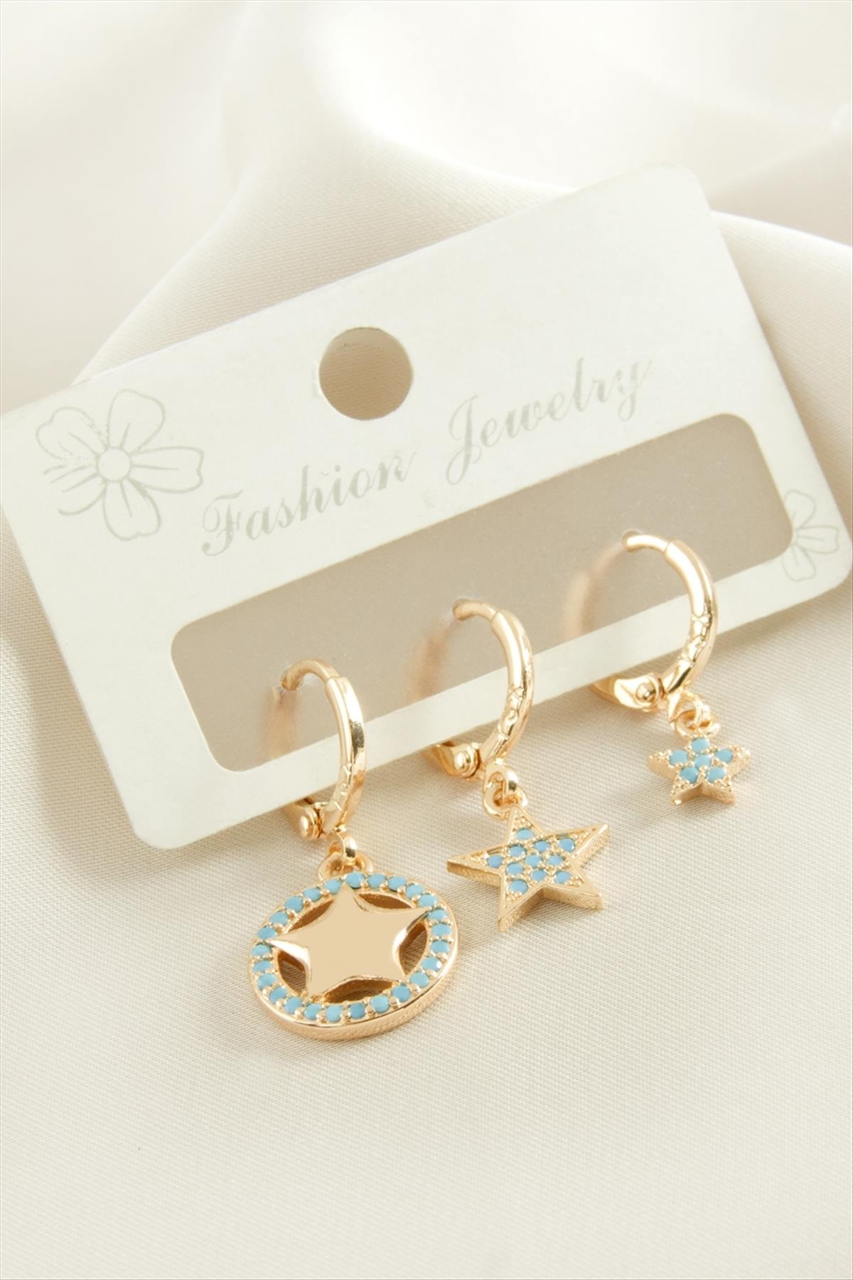 3 Adet Yıldız Zirkon Taşlı Küpe