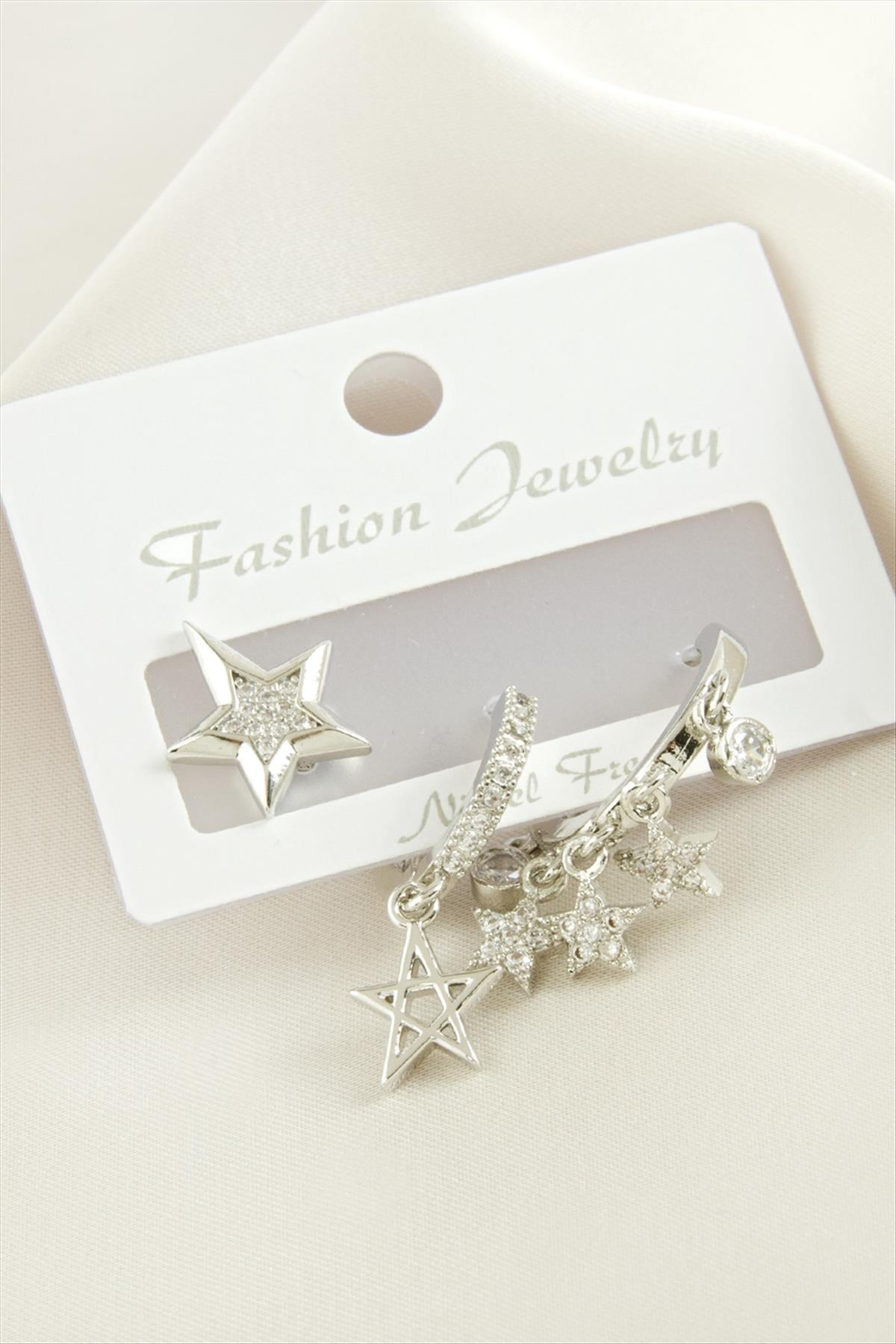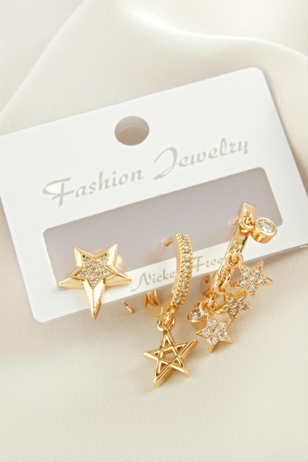 3 Adet Yıldız Zirkon Taşlı Küpe