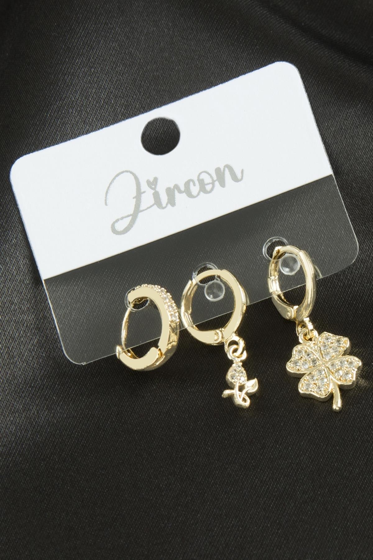 3 Adet Yonca Zirkon Taşlı Küpe