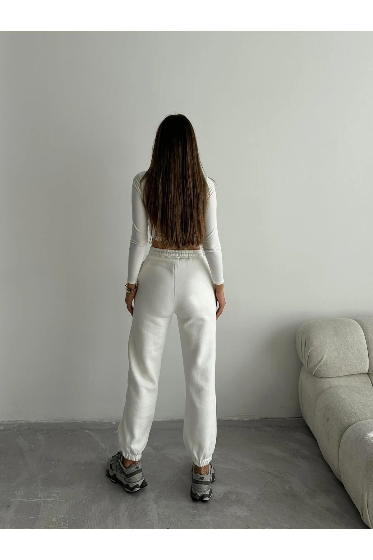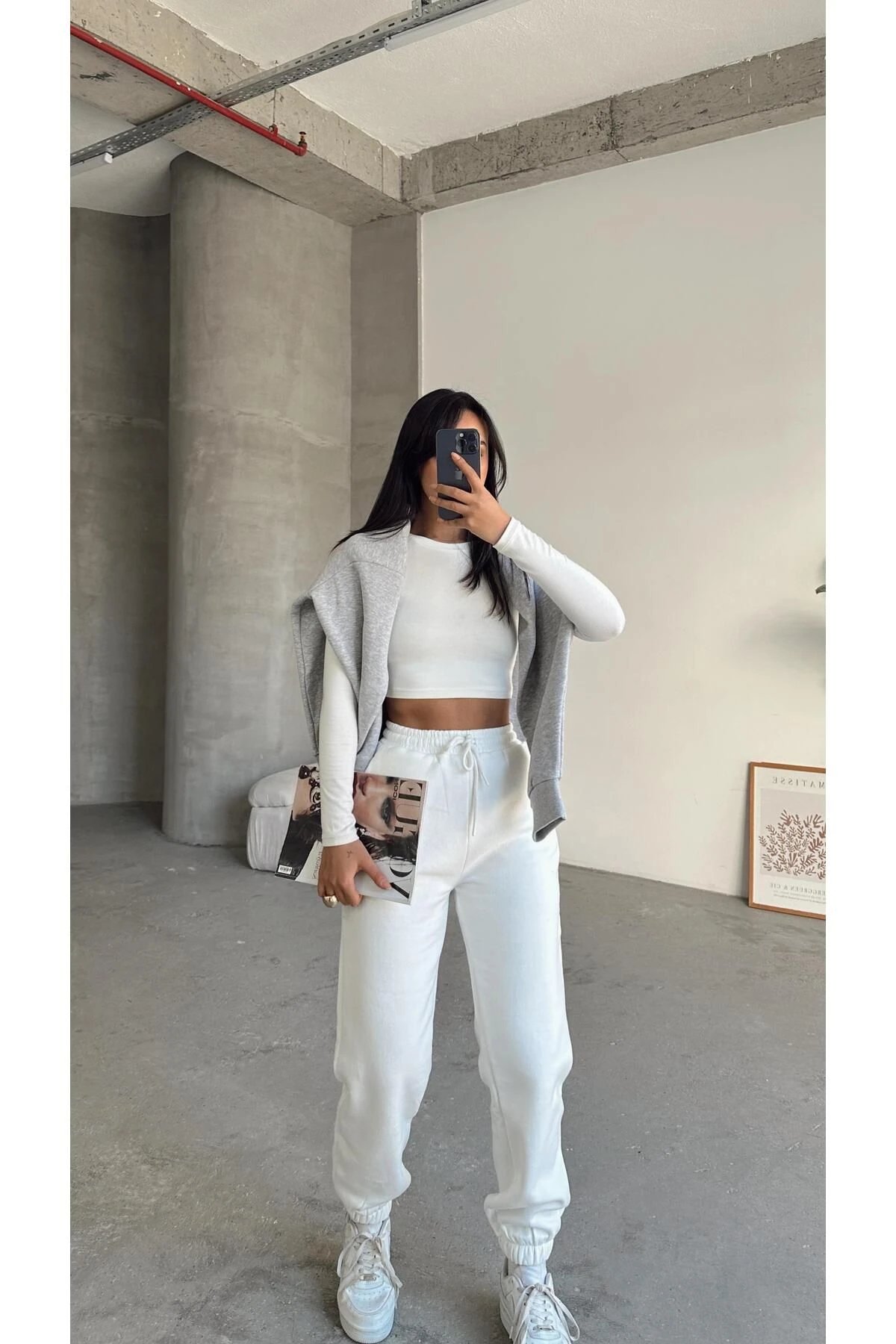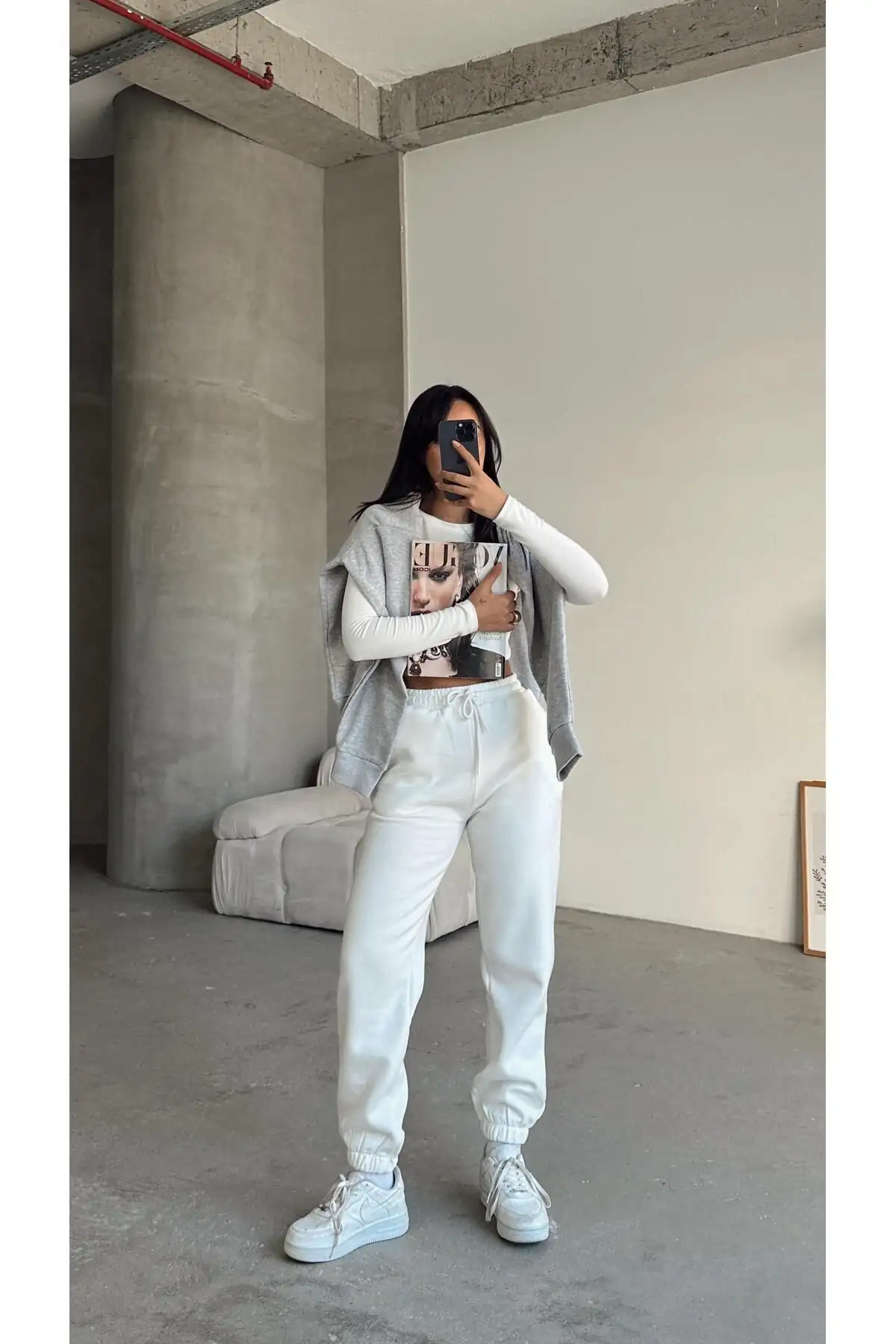 3 İplik Şardonlu Paça Lastikli Eşofman Beyaz İs001 (Beden: M)