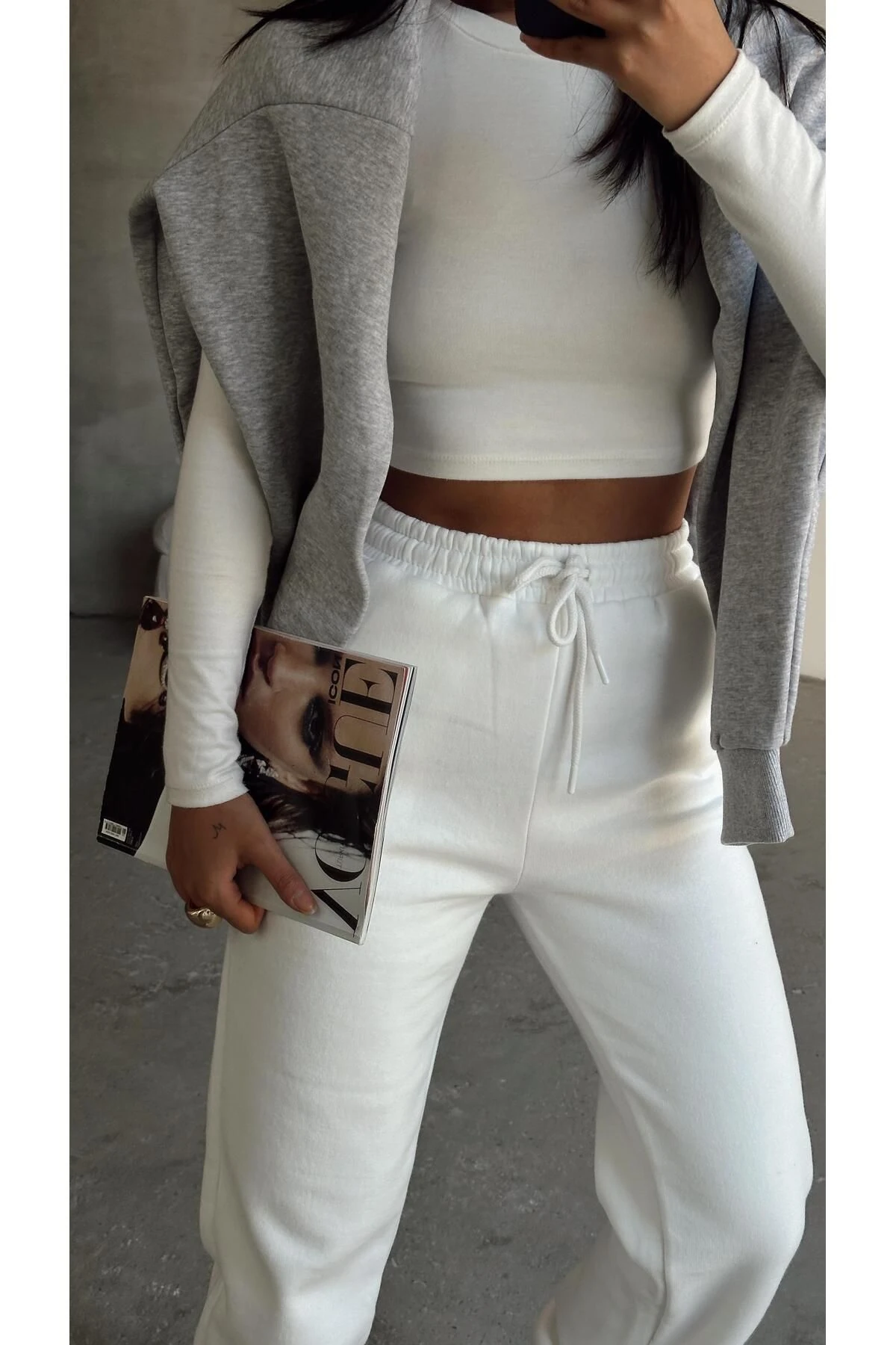 3 iplik şardonlu paça lastikli eşofman beyaz is001 (Beden: M)