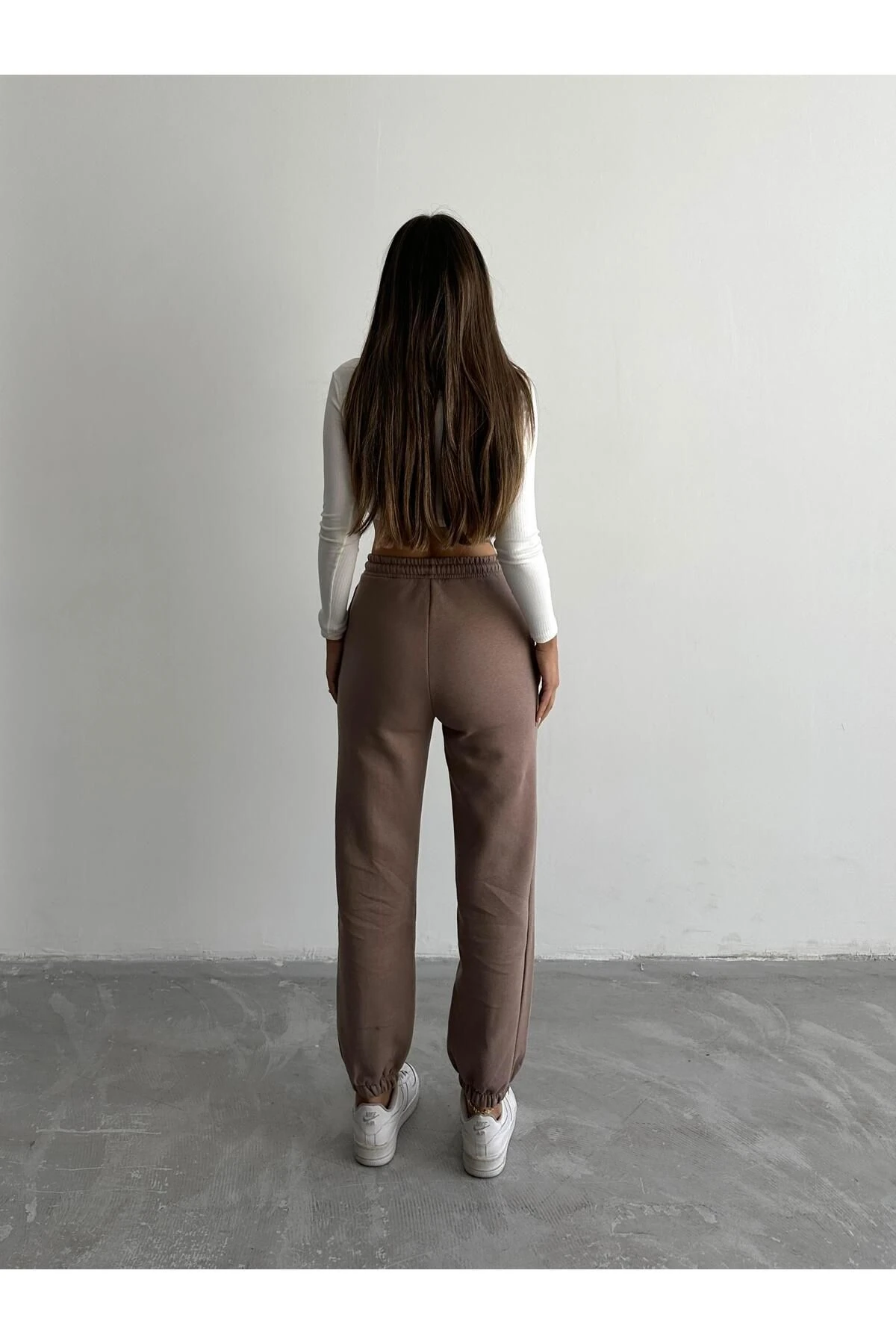 3 iplik şardonlu paça lastikli eşofman vizon is001 (Beden: XL)