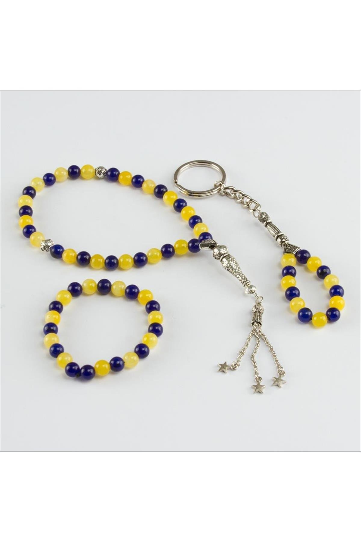 3′ lü Doğal Taş Set Anahtarlık,Bileklik,Tesbih-Sarı