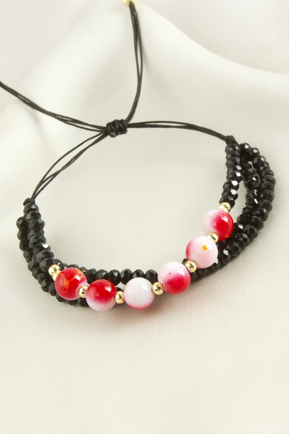 3lü Kristal Boncuk Zincirli Bileklik-Kırmızı