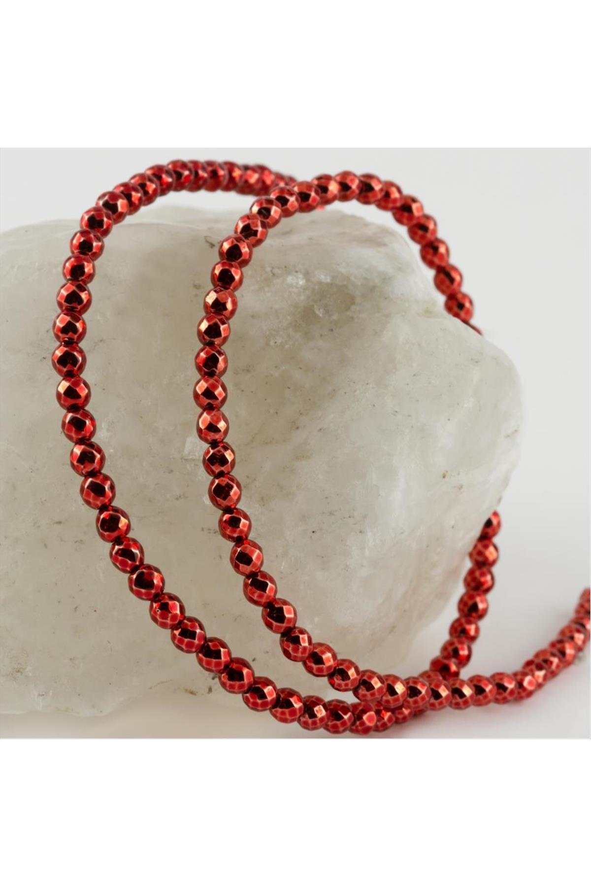 4 mm Fasetli Hematit Taşı-Kırmızı