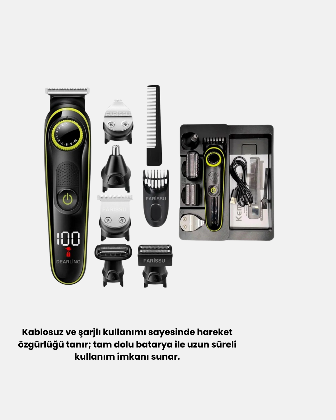 5’i 1 Arada Şarjlı Erkek Bakım Seti LED Göstergeli ve Suya Dayanıklı