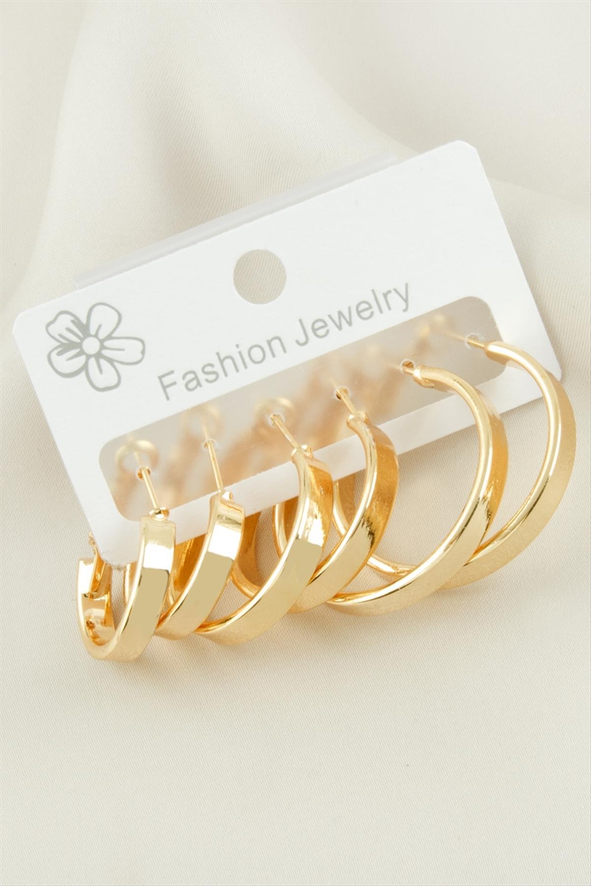 6 Adet Ezme Halka Küpe 2-2,5-3 cm-Sarı