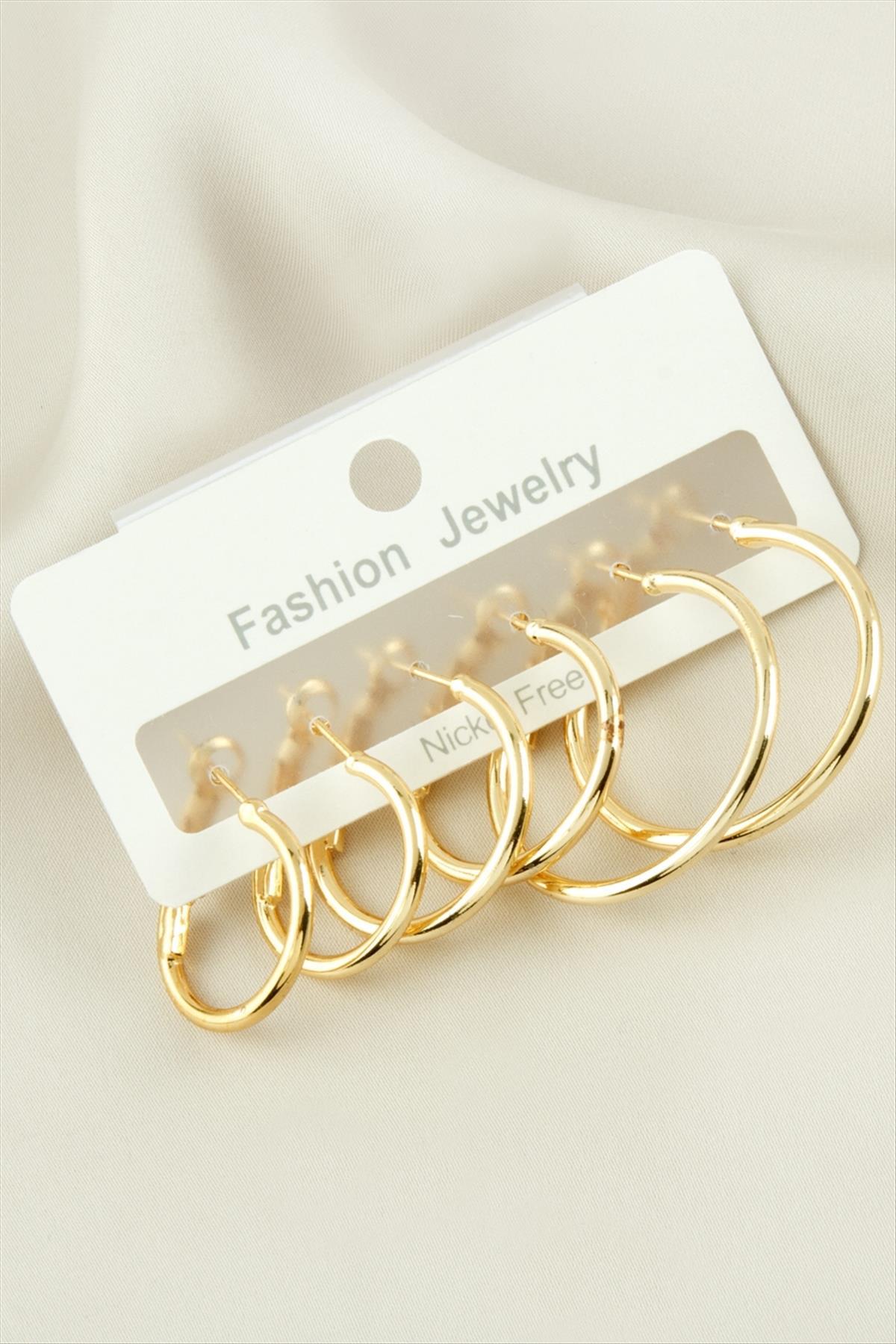 6 Adet İnce Boru Halka Küpe 2-2,5-3 cm-Sarı