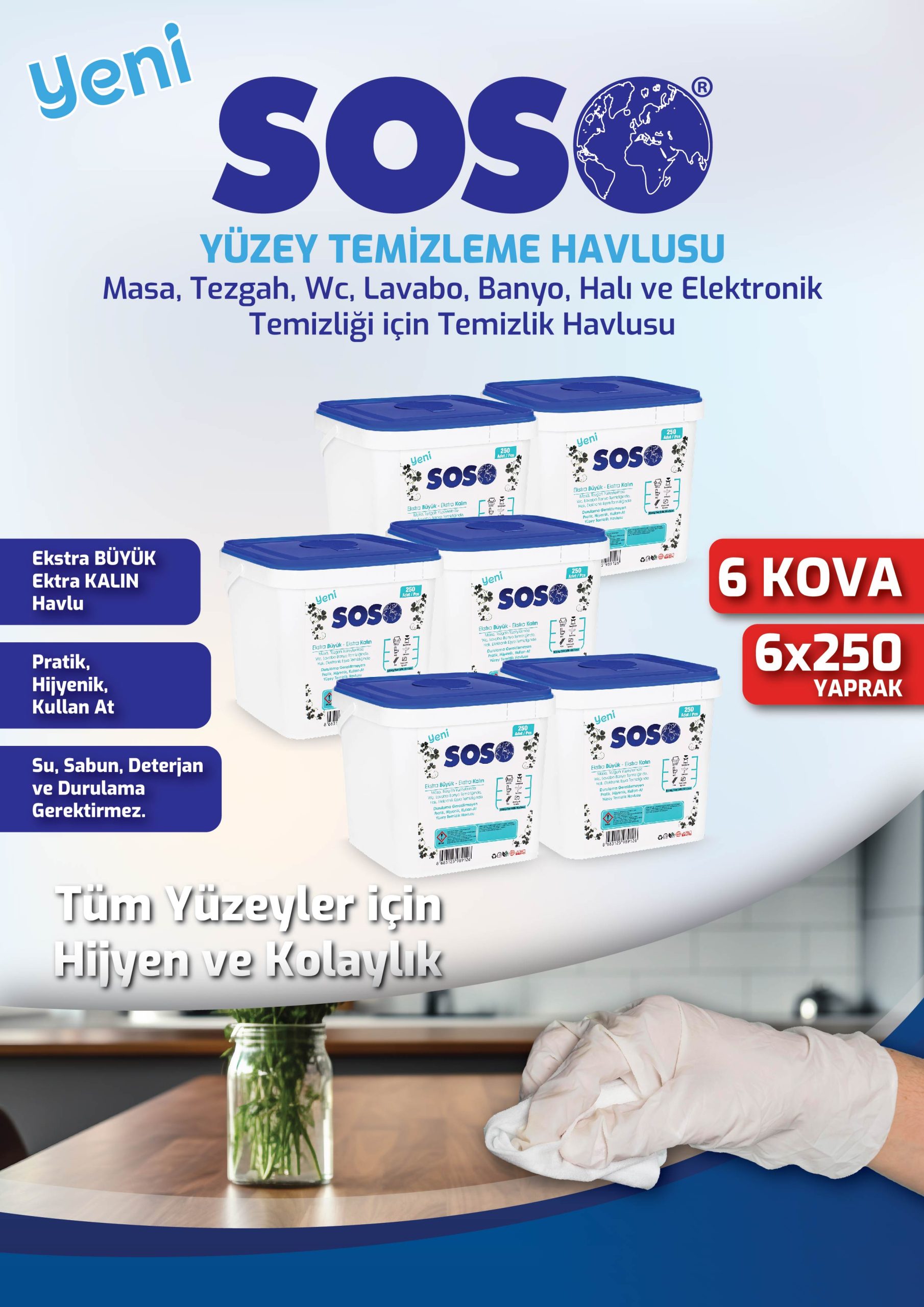 6 adet X 250 Yaprak – Soso Kova Beyaz Sabun Kokulu Sirkeli Karbonatlı Yüzey Temizleme Mendili