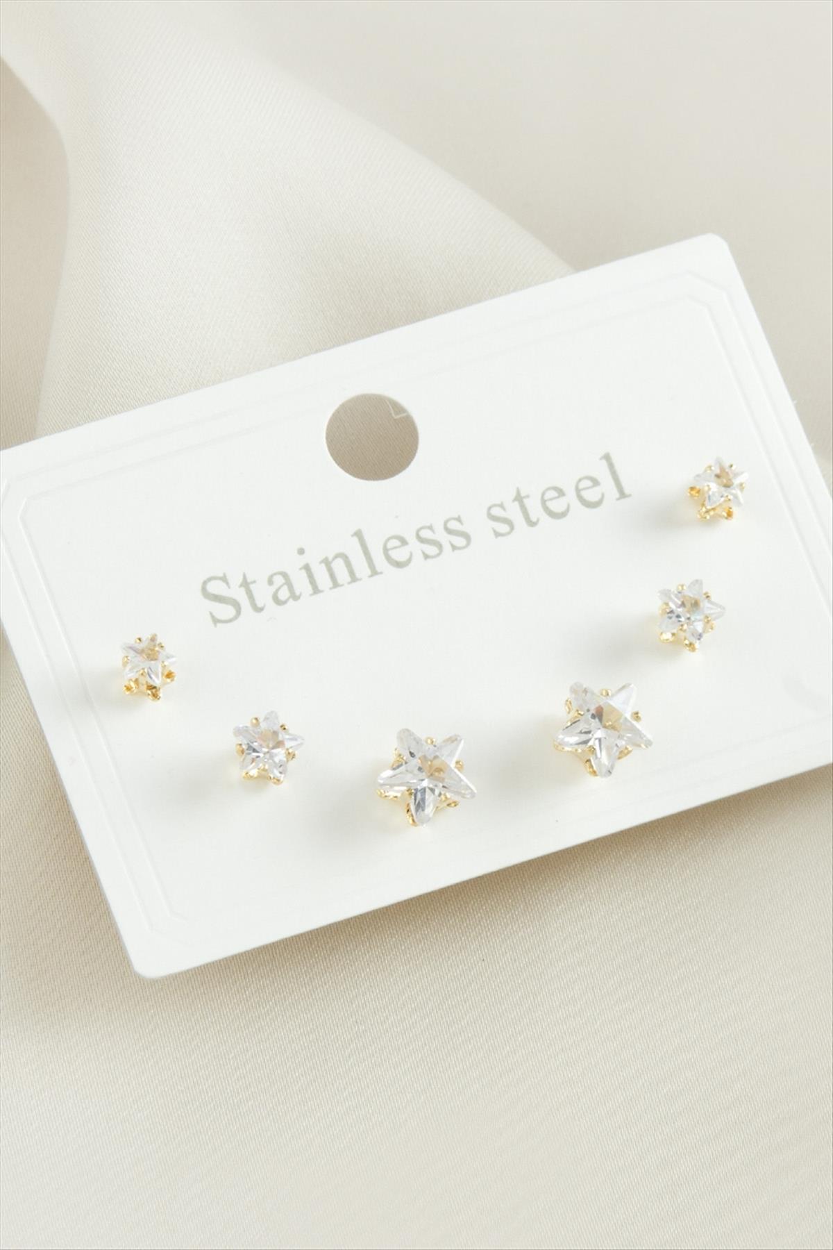 6 Adet Yıldız Zirkon Taşlı Çelik Küpe