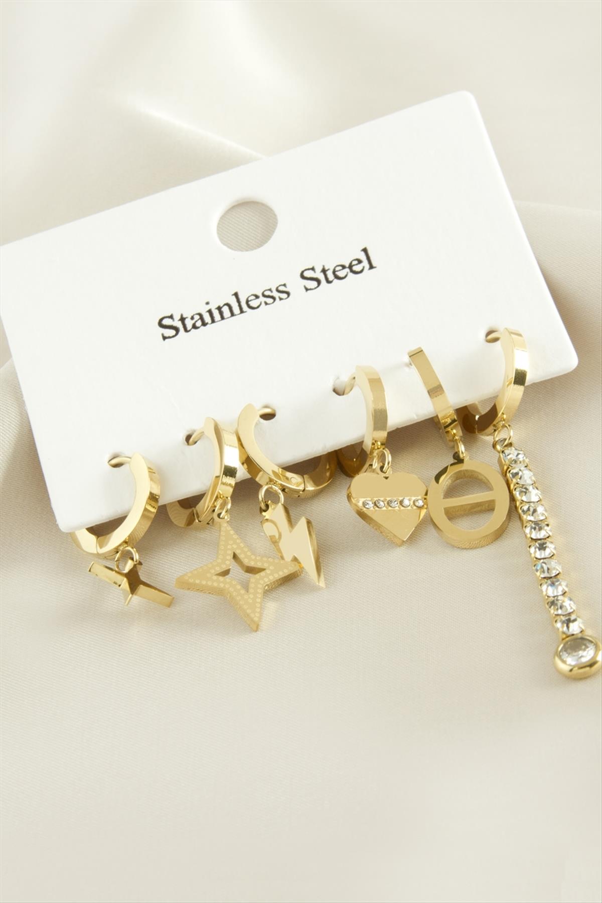 6 Adet Yıldız Zirkon Taşlı Lüks Çelik Küpe-Sarı
