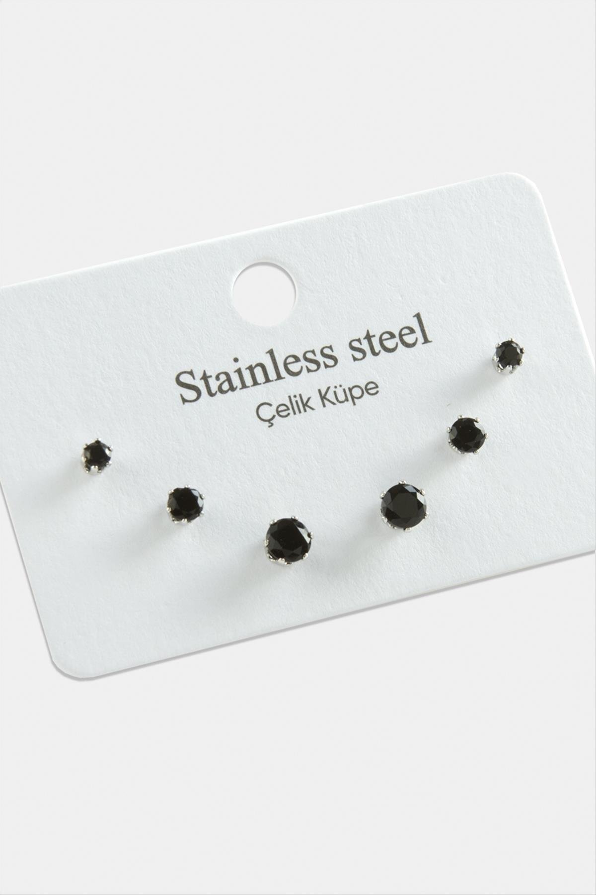 6 Adet Yuvarlak Zirkon Tek Taşlı Çelik Küpe-Siyah