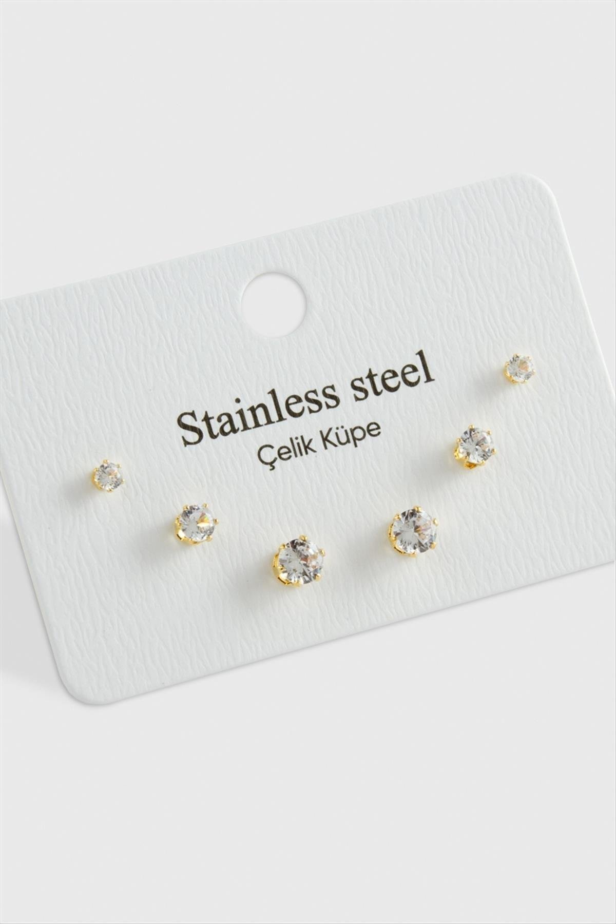 6 Adet Zirkon Tek Taşlı Çelik Küpe-Sarı