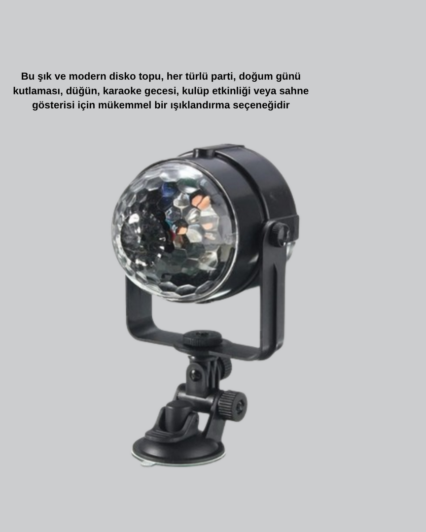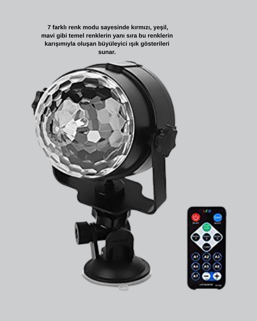 Bu LED disko topu, müzikle senkronize çalışan ışıklarıyla her ortamda büyüleyici bir sahne havası yaratır. 7 farklı renk modu, mavi, kırmızı, yeşil ve bu renklerin karışımıyla ortaya çıkan geçiş efektleriyle göz kamaştırır.