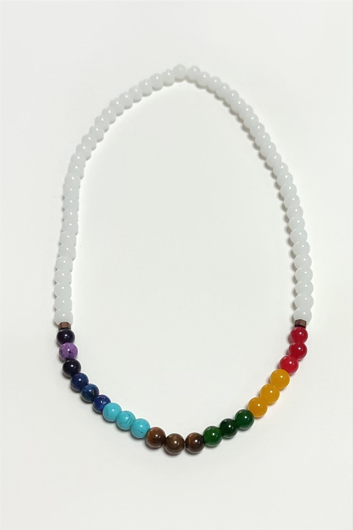 7li Doğaltaş Çakra Kolye-Beyaz