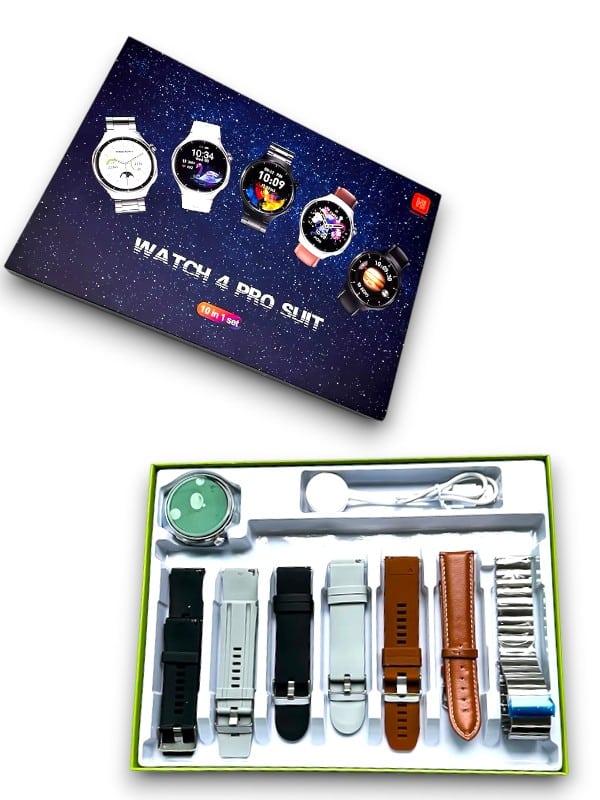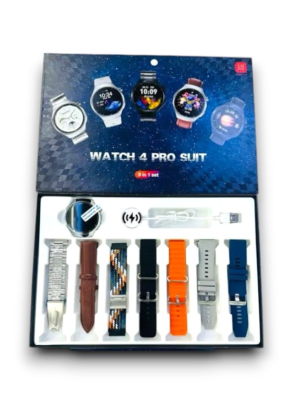 Kutu İçeriği: Watch 4 Pro Akıllı Saat + 7 Kordon + Wireless Şarj Kablosu + Kullanma Kılavuzu