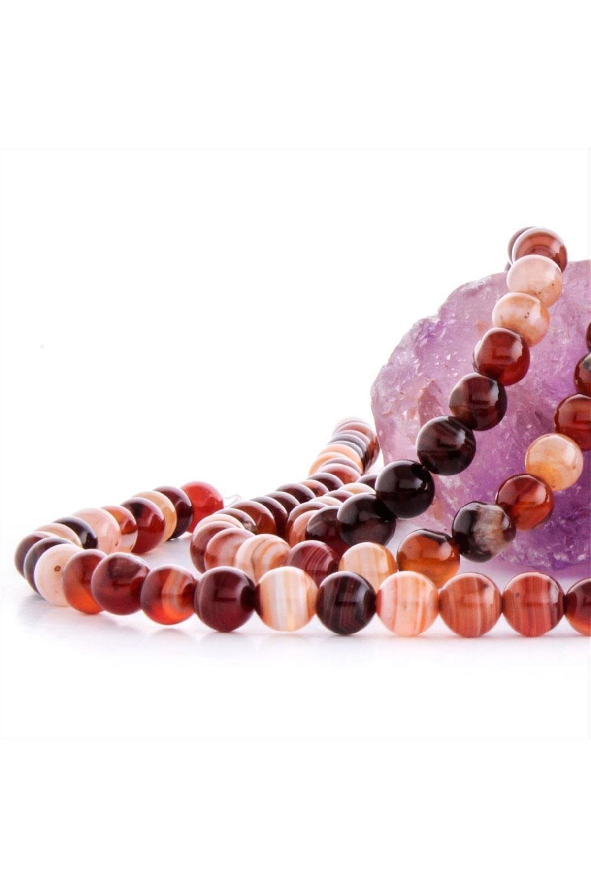 8 mm Damarlı Akik Taşı-Kahverengi