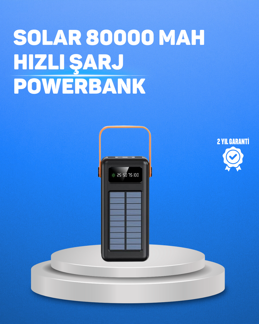 80000 mAh Yüksek Kapasiteli Powerbank Göstergeli Solar Şarj Cihazı