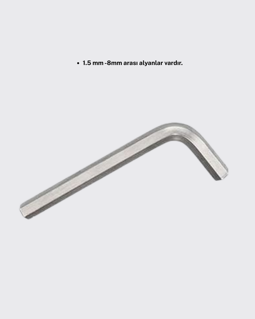 Alyanların L şekilli tasarımı, kullanım sırasında hem güç hem de kontrol sağlar. Kısa kol ile dar alanlara girerek hassas ayarlamalar yapabilir, uzun kol ile sıkı vidaları zorlanmadan söküp takabilirsiniz. Altıgen uç yapısı vida başına tam oturduğu için, özellikle mobilya ve bisiklet montajlarında büyük konfor sağlar.