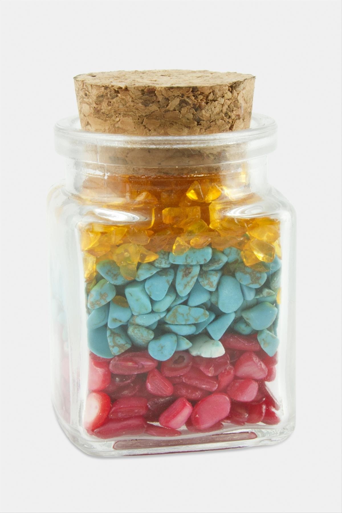 Akik Turkuaz Taşı Cam Şişe Biblo-Renkli