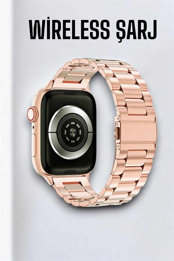 Tam Donanımlı Akıllı Saat – Aktivite ve İletişim Kolaylığı Yüksek Batarya Kapasitesi: 2000-3000 mAh bataryası ile uzun süreli kullanım sağlar, seyahatlerde bile şarj endişesini ortadan kaldırır. Rose Gold Estetiği: Zarif ve şık tasarımıyla stil sahibi kullanıcıların tercihi. Aktivite ve Fitness Takibi: Adımsayar, kalori ölçümü ve egzersiz takibiyle sağlıklı yaşam hedeflerinize ulaşın. Uyku Analizi: Uyku düzeninizi izler, uyku kalitenizi artırmak için veriler sunar. Nabız Ölçer ve Sağlık İzleme: Kalp atış hızınızı anlık izleyerek sağlık hedeflerinize ulaşmanıza yardımcı olur. Entegre GPS Desteği: Rotanızı hassas bir şekilde izler ve yön bulma ihtiyaçlarınızda yardımcı olur. Bluetooth ile Kolay İletişim: Sesli görüşme özelliğiyle telefonunuza dokunmadan aramalarınıza cevap verebilirsiniz. Titreşimli Bildirimler: Gelen aramalar, mesajlar ve uygulama uyarılarını titreşimle kolayca fark edin.Gelişmiş özellikleri ve şık tasarımıyla hem işlevsellik hem de estetik arayan kullanıcılar için mükemmel bir tercih.