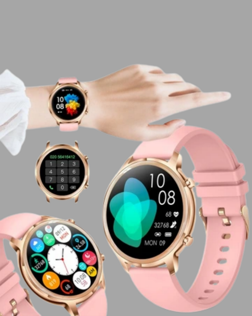 Zarif tasarımıyla dikkat çeken bu akıllı saat, modern yaşamın temposuna ayak uydurmak için tasarlandı. Kompakt boyutu, yüksek performansı ve estetik görünümü sayesinde hem günlük kullanım hem de özel günler için mükemmel bir tamamlayıcıdır.