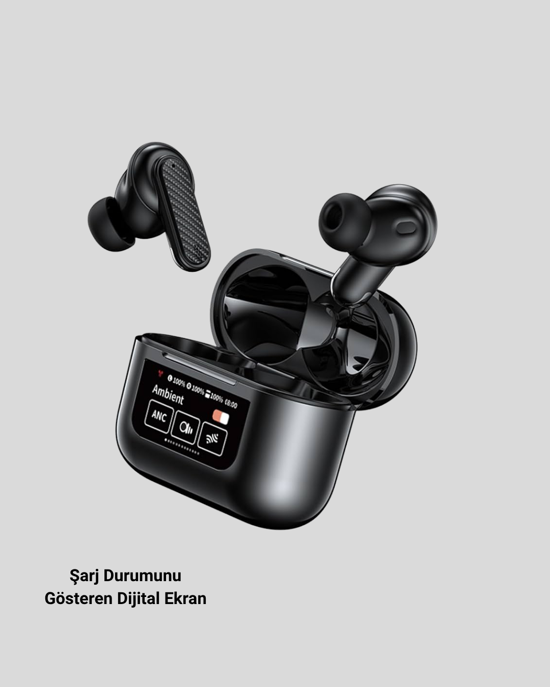 Aktif Gürültü Engelleme (ANC) Kablosuz Bluetooth Kulaklık – Dijital Ekranlı, Dokunmatik ve Uzun Pil Ömürlü