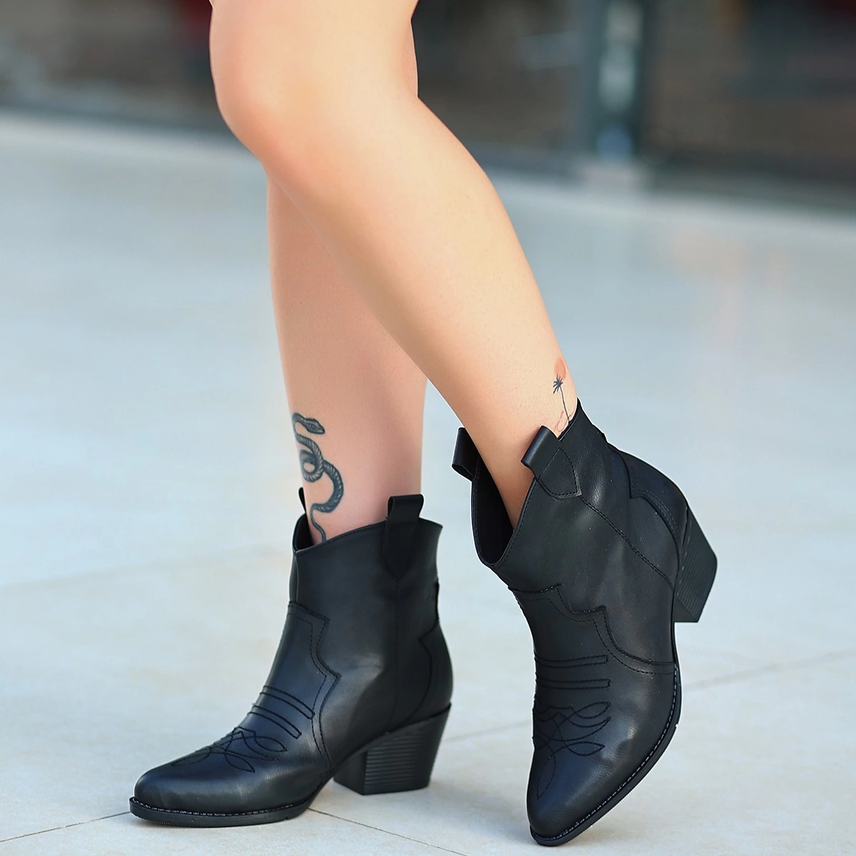 Akver Siyah Cilt Topuklu Bot (Numara: 36)