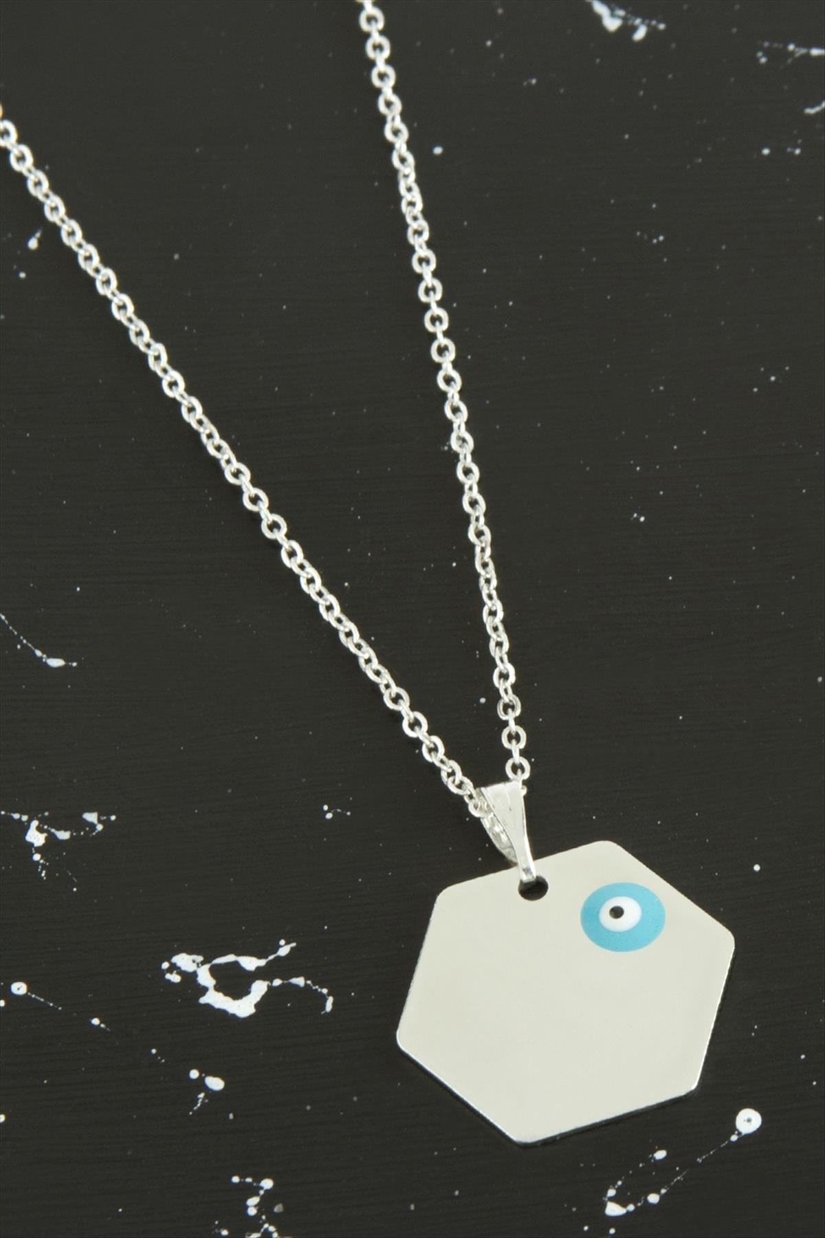 Altıgen İsim Yazılabilir Kolye-Gümüş Rengi