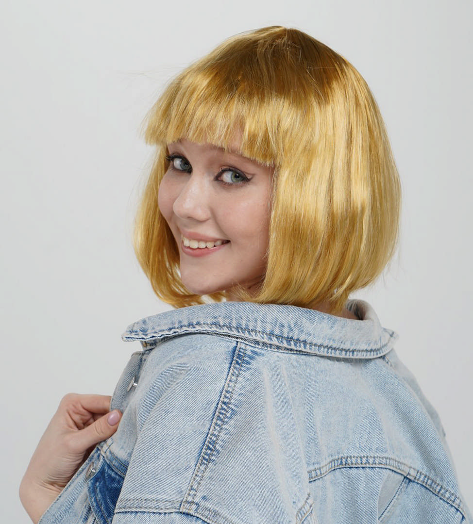 Altın Renk Düz Kesim Küt Parti Peruğu: Cesur ve Göz Alıcı Bir Görünüm İçin