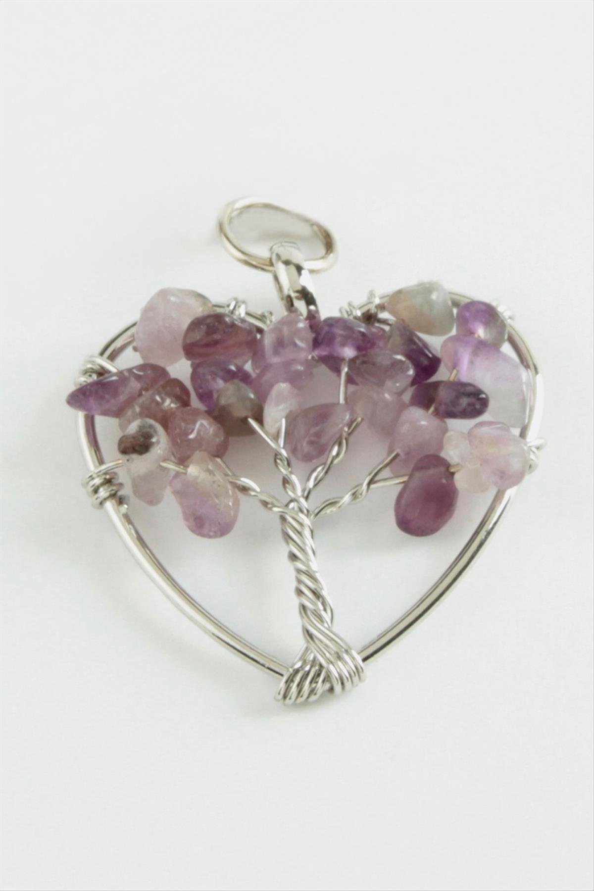 Ametist Kalp Doğaltaş Kolye Ucu-Mor