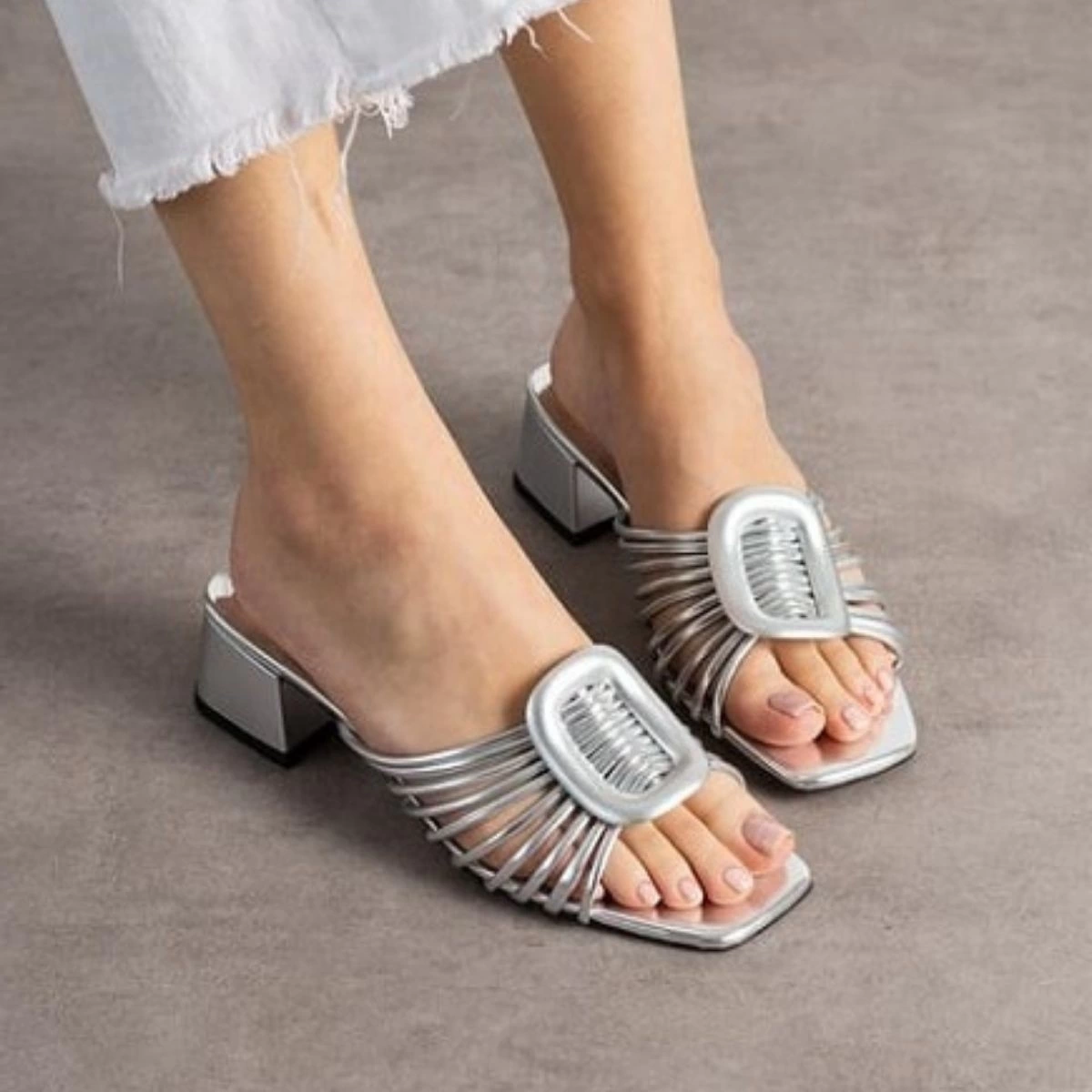 Anca Gümüş Rugan Topuklu Terlik (Numara: 38)
