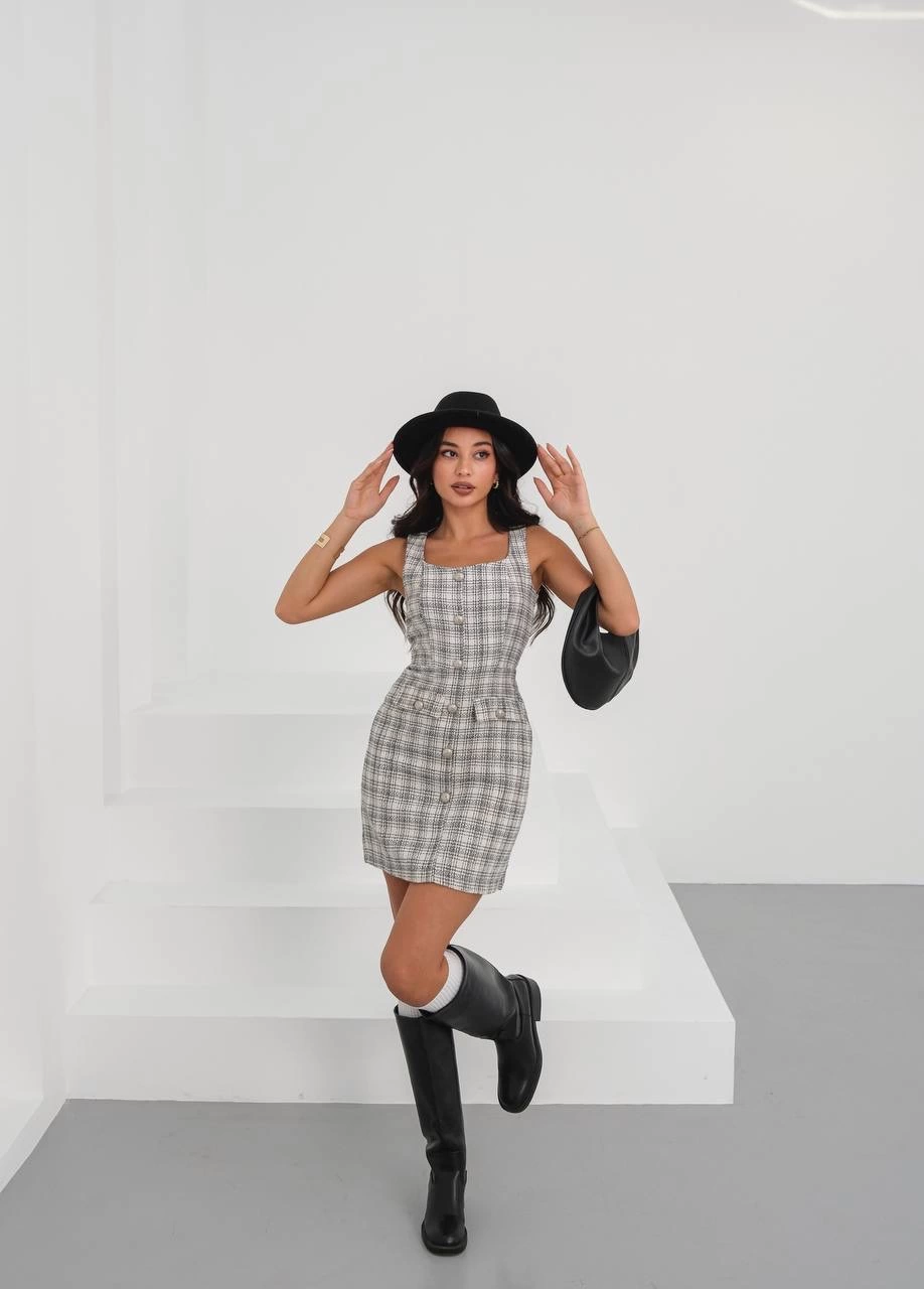 Askılı Ch Kumaş Düğmeli Elbise Gribeyaz H265007 (Beden: S)