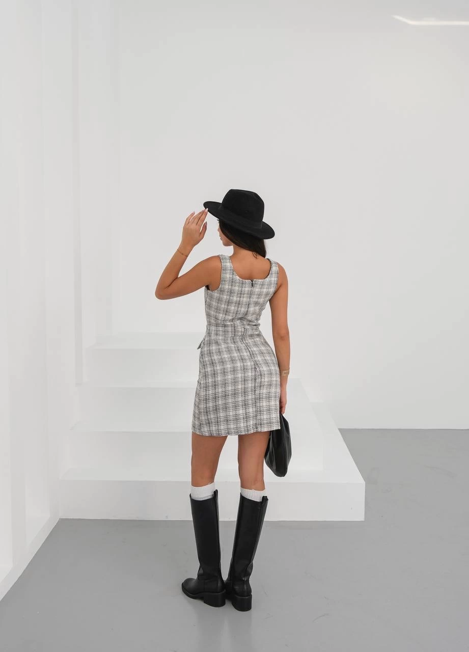 Askılı Ch Kumaş Düğmeli Elbise Gribeyaz H265007