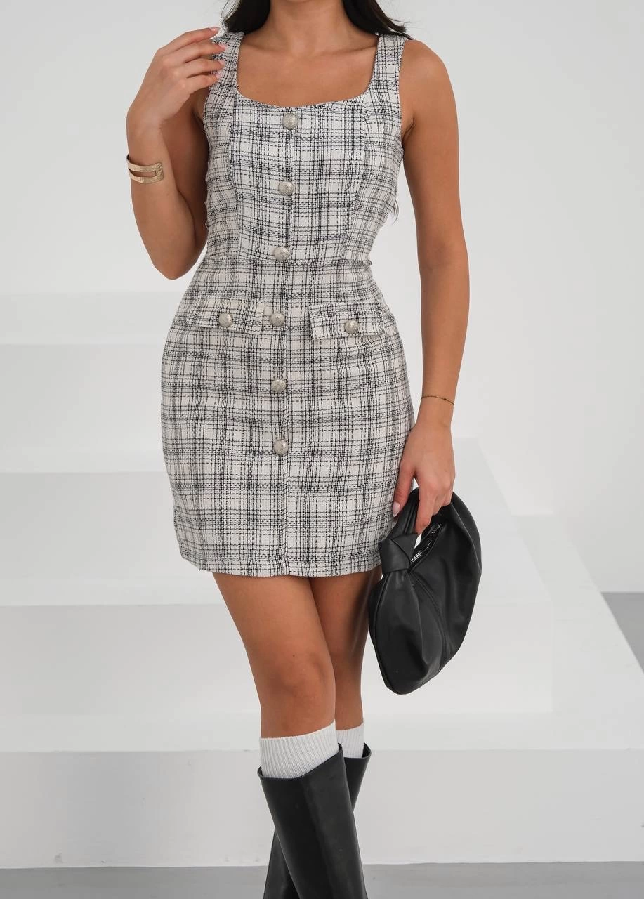 Askılı Ch Kumaş Düğmeli Elbise Gribeyaz H265007