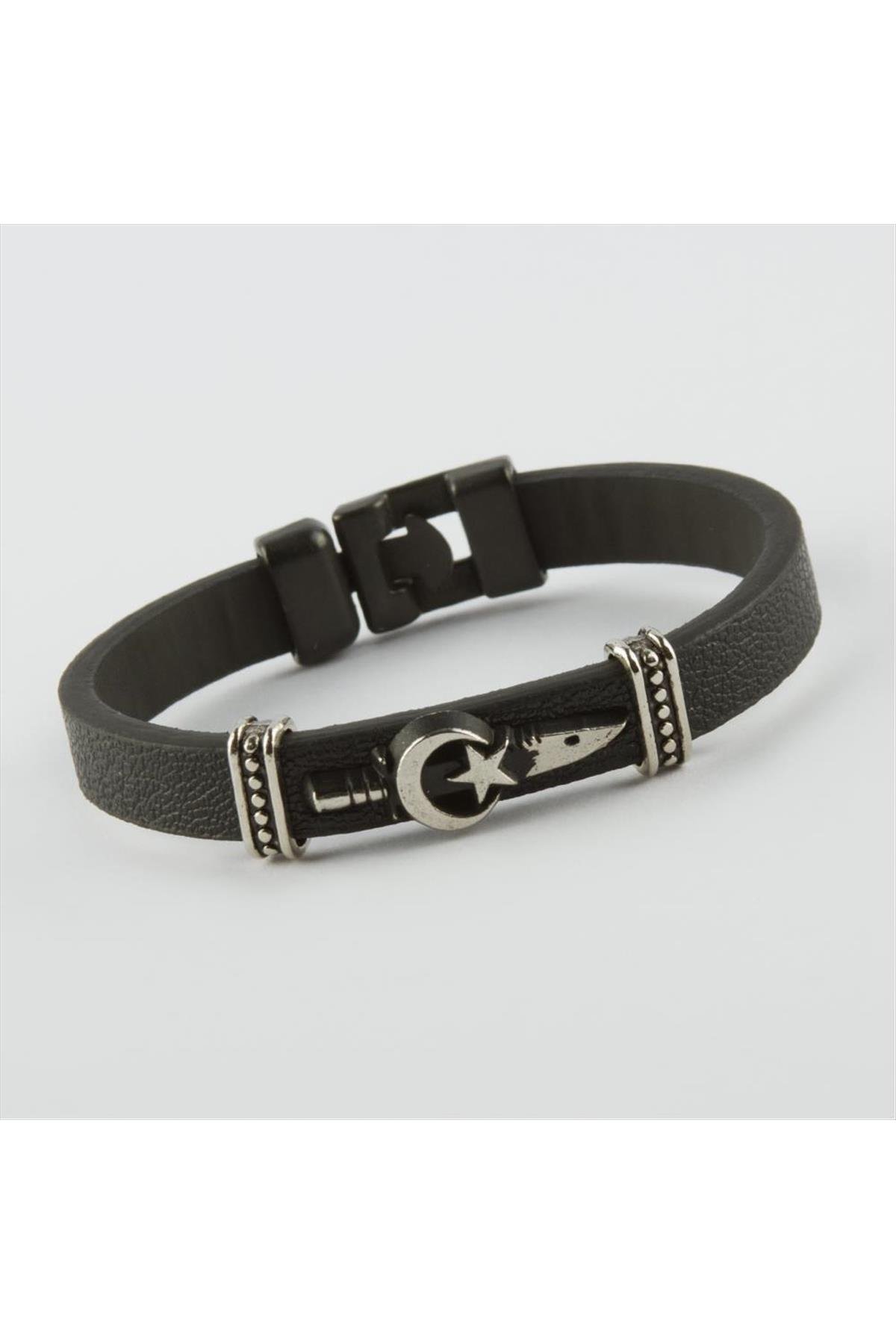 Ay Yıldız Kaliteli Suni Deri Bileklik-Siyah