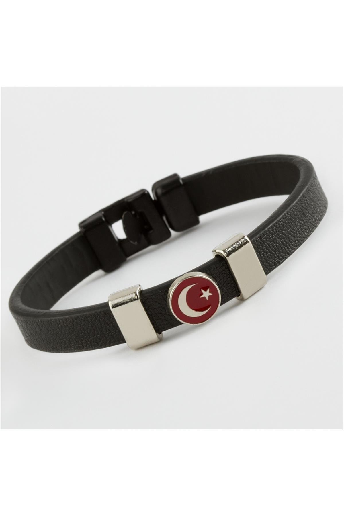Ay Yıldız Kaliteli Suni Deri Bileklik-Siyah