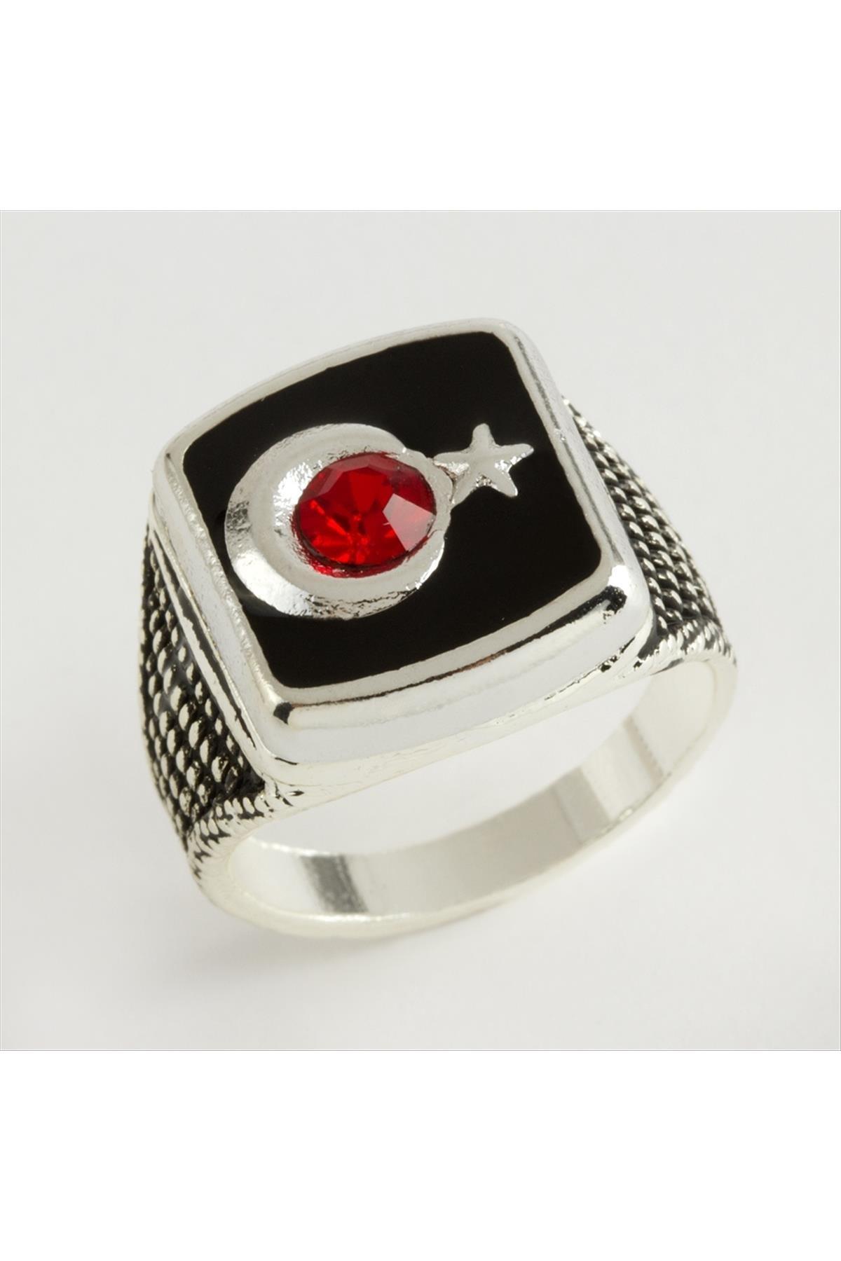 Ay Yıldız Metal Erkek Yüzük-Gümüş Rengi