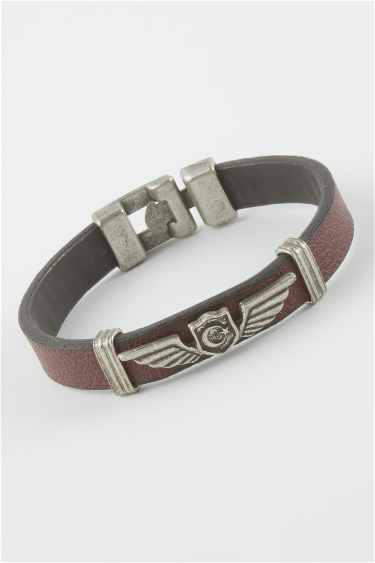 Ay Yıldız Suni Deri Bileklik-Bordo