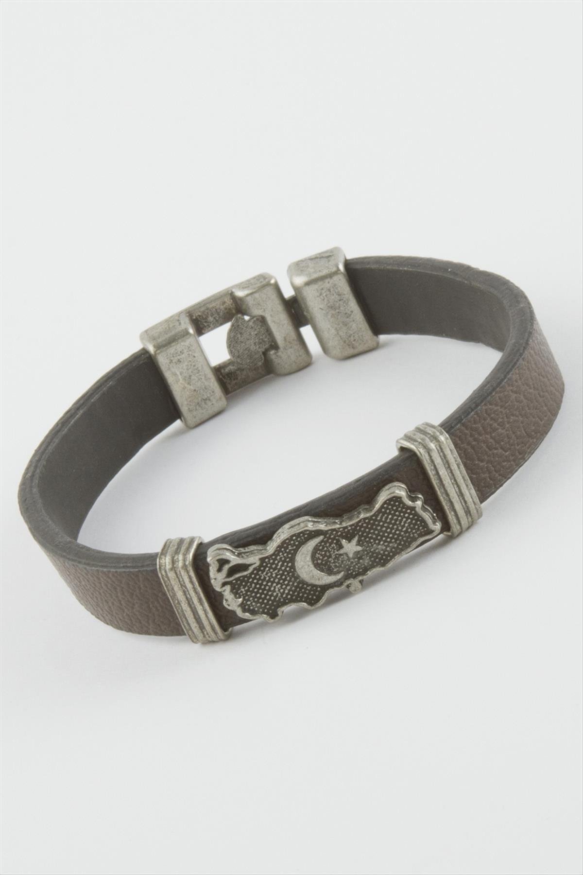 Ay Yıldız Suni Deri Bileklik-Kahverengi